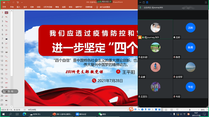 7月28日,工程熱物理研究所黨支部開展黨史學(xué)習(xí)教育主題黨日活動,支部書記王平陽講授關(guān)于“道路自信和理論自信”的微黨課,活動以線上與線下相結(jié)合的形式進(jìn)行。