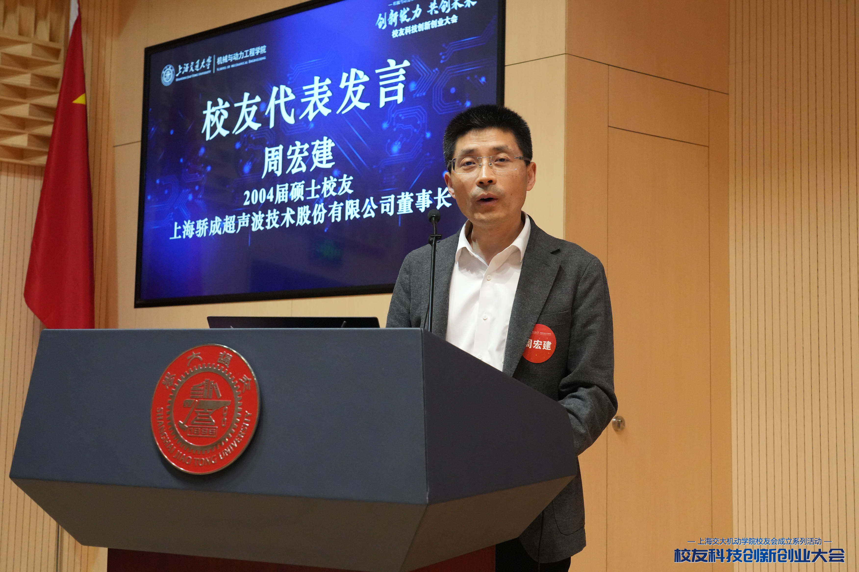 2004屆碩士校友、上海驕成超聲波技術(shù)股份有限公司董事長周宏建分享了自己的創(chuàng)業(yè)經(jīng)歷,從攻克“超聲波裁刀”卡脖子技術(shù)開始,十余年來心無旁騖專攻主業(yè),解決行業(yè)痛點,鼓勵校友們堅持自主研發(fā),把關(guān)鍵核心技術(shù)掌握在自己手中。