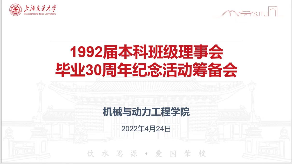 4月24日,1992屆本科班級理事會畢業(yè)30周年紀念活動籌備會于線上成功舉辦,20余名班級理事云相聚,為畢業(yè)30周年的團聚獻言獻策。