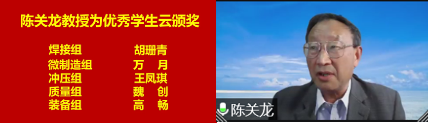 陳關(guān)龍教授為胡珊青、萬月、王鳳琪、魏創(chuàng)和高暢5位學(xué)生頒發(fā)2021年度研究所優(yōu)秀學(xué)生獎,勉勵大家要“有理想、有抱負(fù)、有能力”,勇攀科學(xué)高峰,為國家發(fā)展和科技進(jìn)步做出貢獻(xiàn)。