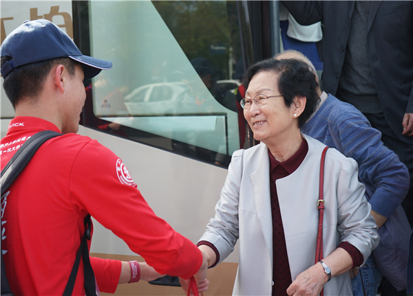 上午8時,學長、學姐們陸續(xù)回到母校校園,在志愿者熱情的引導下找到了昔日的老同學。“50年了,自從文革后就與同學沒有了聯(lián)系,感謝百廿校慶這個契機,感謝學院的組織,讓我們得以再次相聚。”久別重逢非少年,萬語千言不忍談,少年換了白頭,再見時百感交集。