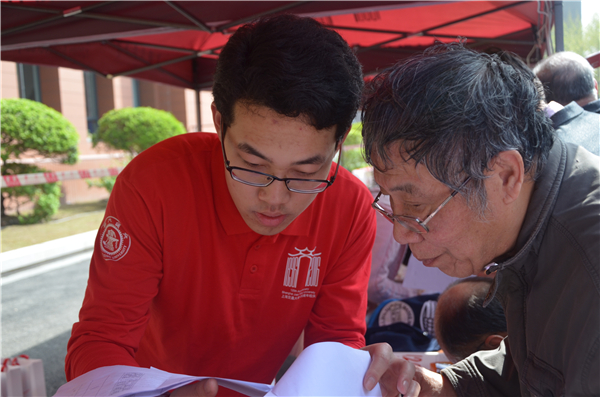 來自58屆船舶蒸汽發(fā)動機系的鄒慧君學長曾經(jīng)參與過100周年的校慶活動,畢業(yè)后更是在學校執(zhí)教多年至今,提到交大的變化也是感慨萬分。“那時候的交大還叫做上海造船學院,圖書館旁邊卻是個打鐵的地方,”學長指了指身后的老圖書館和學弟學妹們說道,“大家都是在這種環(huán)境下完成自己的作業(yè)和畢業(yè)設(shè)計。”提起昔日的學習時光,老校友們陷入回憶,找到了共鳴,圍站在一起,向志愿者們描繪出昔日那段風雨兼程的求學成才路。