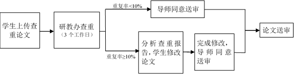 若論文重復(fù)率大于等于10%,學(xué)生需填寫附件《研究生學(xué)位論文重復(fù)率檢測結(jié)果反饋表》,對查重報(bào)告進(jìn)行分析,由導(dǎo)師指導(dǎo)學(xué)生對論文進(jìn)行修改。修改完成后,經(jīng)導(dǎo)師同意可申請進(jìn)入論文送審流程。