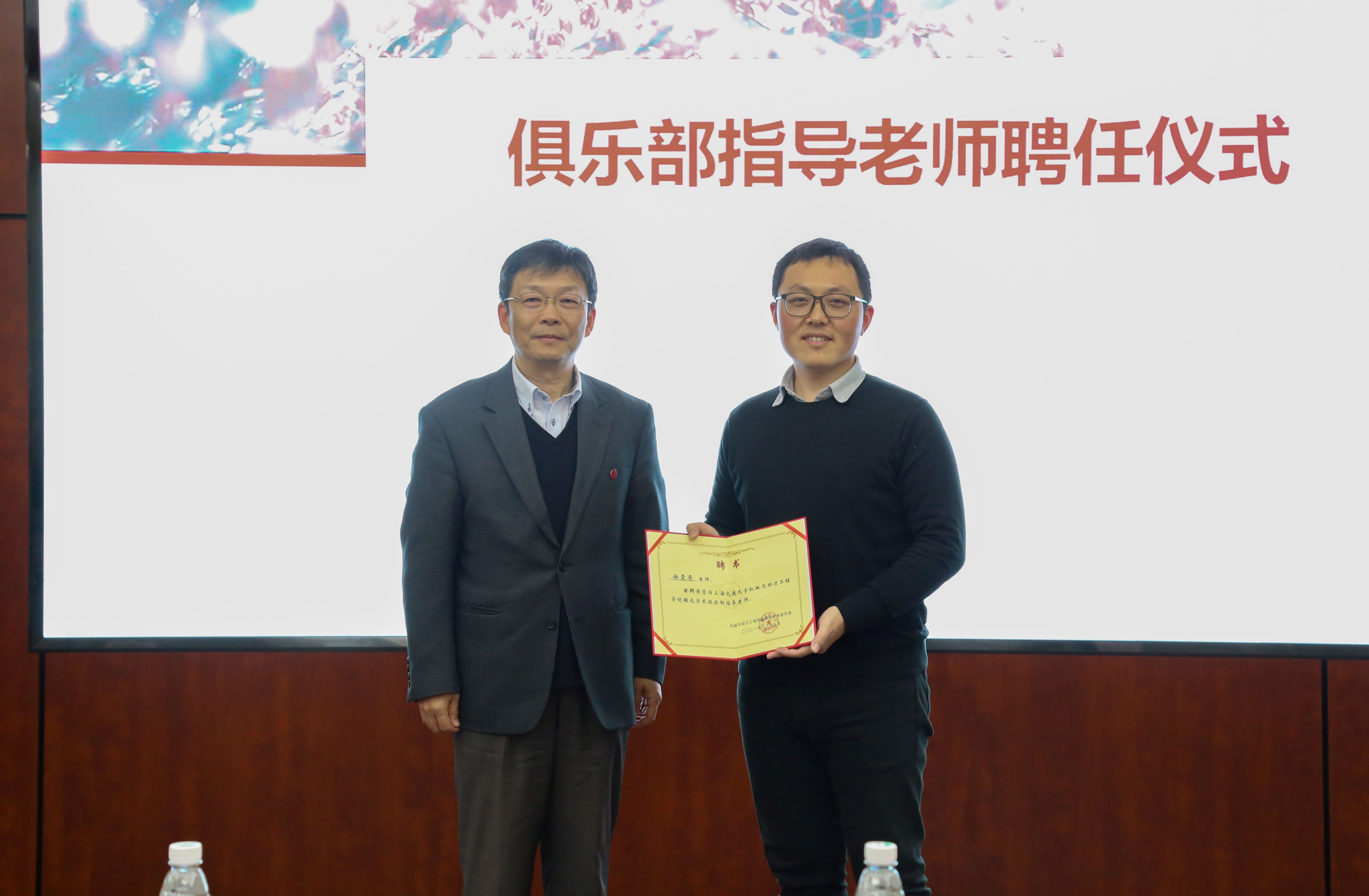 杜朝輝為新任俱樂部指導老師徐震原副教授頒發(fā)聘書并總結致辭,對所有致遠榮譽計劃直博生提出殷切期盼:一要志存高遠,勇?lián)厝危砷L為社會主義事業(yè)的建設者和接班人;二要熱愛祖國,獻身科學,以錢學森學長為榜樣,為祖國和人民奉獻出自己的青春力量;三要樹立榜樣,促進學風,帶動全體博士生勤學奮進,勇攀高峰。