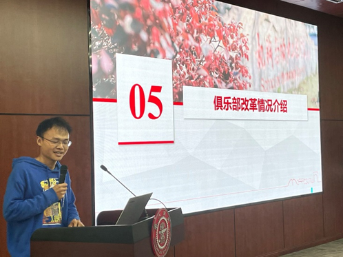 俱樂部副主席李天奇總結了2020-2021學年工作情況,俱樂部先后舉辦了學術沙龍、學術年會等活動,俱樂部成員斬獲60余人次榮譽獎項,發(fā)表論文73篇,申請專利及軟件著作權16項。俱樂部主席馮苗對俱樂部名稱變更研討過程、俱樂部章程、改革目標和改革舉措等進行了詳細介紹,指出后續(xù)將帶領俱樂部成員以俱樂部章程為指導,將俱樂部打造成為博士生高水平培養(yǎng)、交流和展示的平臺。副主席嚴嘉瑋介紹了本屆俱樂部的管理委員會、部門組成,以及2021-2022學年工作計劃。在場師生還投票選出俱樂部的部旗和部徽,指導教師蔡偉偉為俱樂部授予部旗。