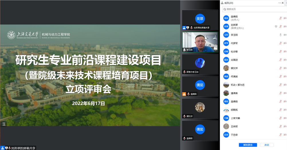 6月17日,學(xué)院舉行研究生專業(yè)前沿課程建設(shè)項(xiàng)目(暨院級(jí)未來(lái)技術(shù)課程培育項(xiàng)目)立項(xiàng)評(píng)審會(huì)。學(xué)院副院長(zhǎng)李玉陽(yáng),機(jī)械工程及自動(dòng)化系主任朱利民、動(dòng)力與能源工程系系主任代彥軍、核科學(xué)與工程學(xué)院院長(zhǎng)顧漢洋,研究生教學(xué)督導(dǎo)組組長(zhǎng)上官文峰、副組長(zhǎng)郭為忠,以及14位課程負(fù)責(zé)老師參與評(píng)審會(huì)。