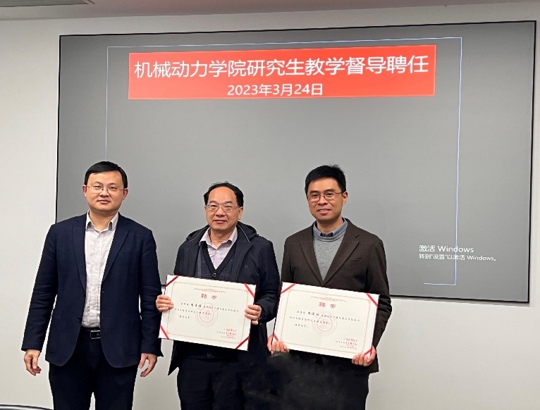 李玉陽為周月桂、韓東、熊進標(biāo)三位新聘學(xué)院研究生教學(xué)督導(dǎo)頒發(fā)聘書,并代表學(xué)院感謝研究生教學(xué)督導(dǎo)團隊對學(xué)院研究生教學(xué)工作的支持,隨后對2022年秋季學(xué)期研究生課程專業(yè)評教等級進行了通報,并對《機械與動力工程學(xué)院研究生課程專業(yè)評教實施辦法(2023年修訂)》(院字[2021]13號)進行了通報。