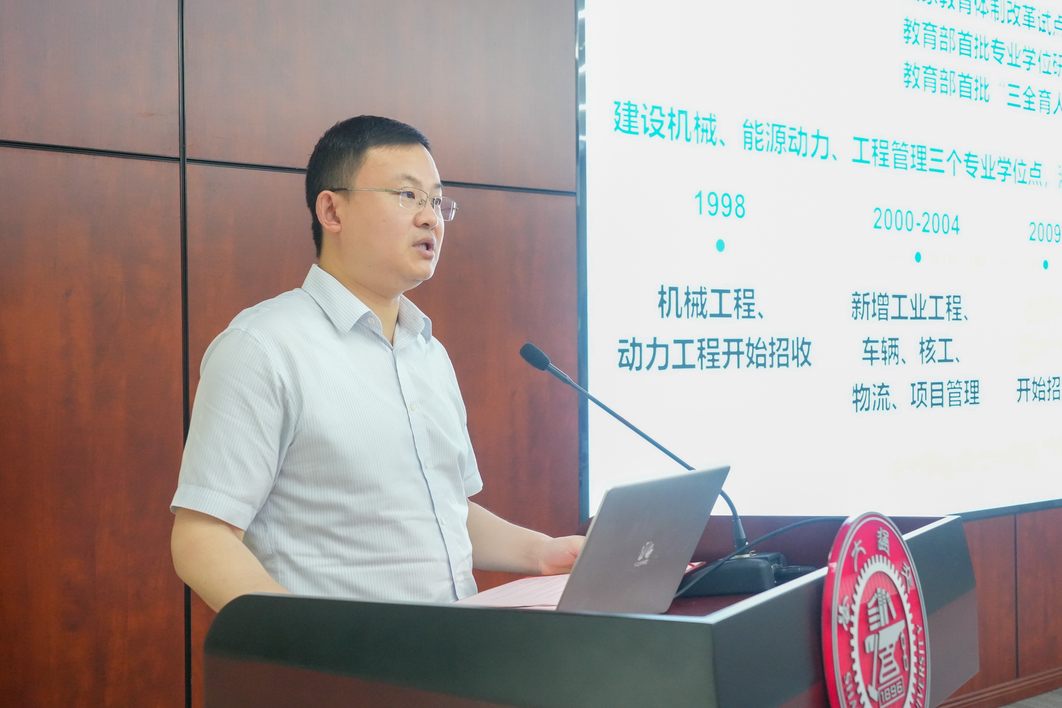 李玉陽介紹學(xué)院基地建設(shè)現(xiàn)狀,學(xué)院現(xiàn)承擔(dān)4個(gè)工程碩博士培養(yǎng)改革專項(xiàng)和6個(gè)校級(jí)工程碩士改革專項(xiàng)基地的建設(shè)任務(wù),已與基地企業(yè)從課程、培養(yǎng)、管理三個(gè)方面全面推進(jìn)基地建設(shè),建成“一點(diǎn)三面”管理模式,全面保障基地人才培養(yǎng)質(zhì)量。