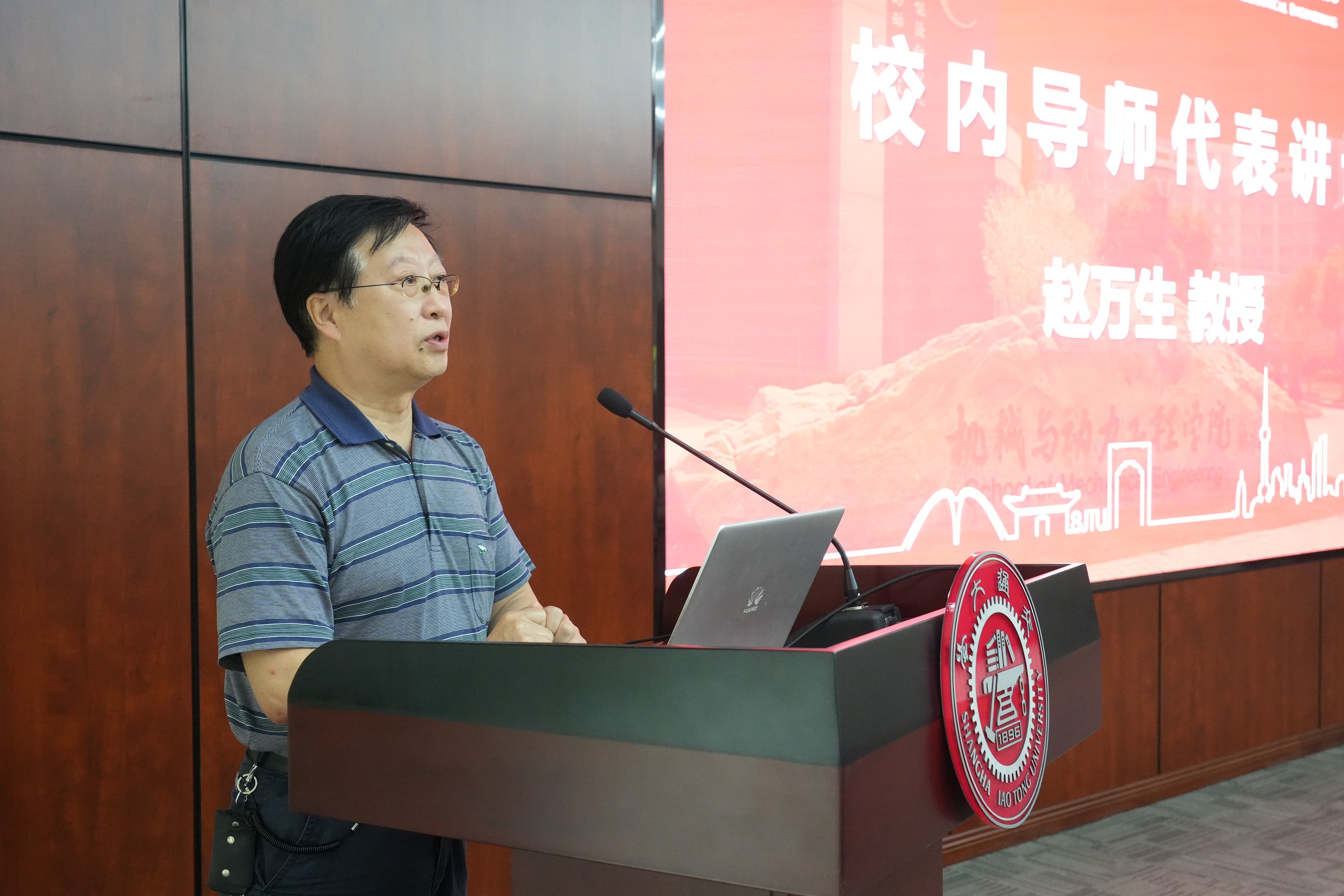 校內(nèi)導(dǎo)師代表趙萬生分享了“機(jī)床大王”于德海打破國外科技?jí)艛鄤?chuàng)立中國本土專業(yè)化高檔數(shù)控機(jī)床,以及所帶研究生在解決企業(yè)實(shí)際難題中收獲成長的故事,勉勵(lì)基地研究生將個(gè)人成長與國家發(fā)展相結(jié)合。