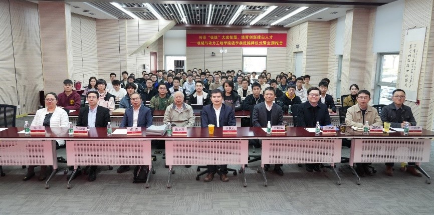 3月20日,機械與動力工程學(xué)院舉行“錢學(xué)森班”揭牌儀式暨主題報告活動。錢學(xué)森圖書館館長錢永剛,校教務(wù)處處長章俊良,錢學(xué)森圖書館黨總支書記、副館長張勇,學(xué)院院長杜朝輝、黨委副書記張執(zhí)南、副院長夏唐斌,錢學(xué)森班學(xué)生代表及班主任參加了活動。儀式由夏唐斌主持。