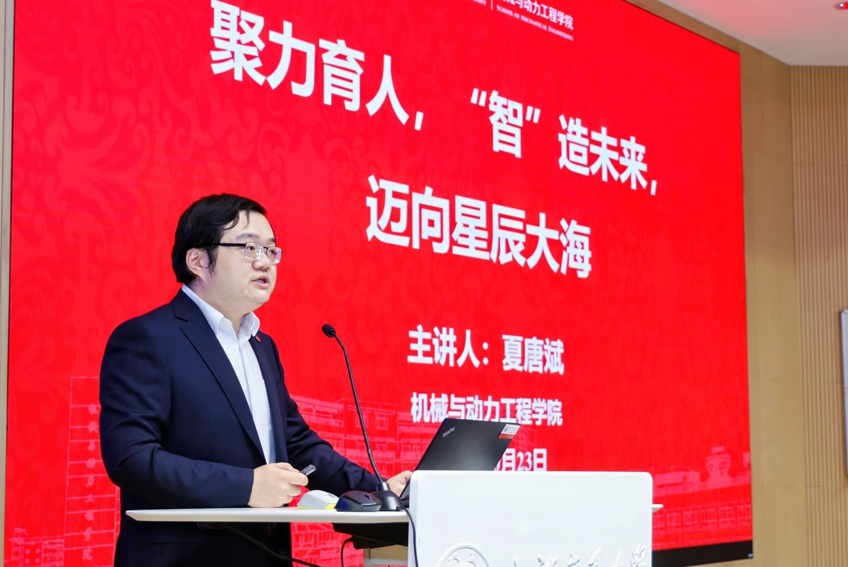副院長(zhǎng)夏唐斌以“聚力育人,‘智’造未來(lái),邁向星辰大海”為主題,詳細(xì)解讀了學(xué)院的本科專(zhuān)業(yè)、人才培養(yǎng)方案、課程體系以及以“智能制造”為代表的前沿研究領(lǐng)域,鼓勵(lì)大家勇于探索、敢于創(chuàng)新,努力成為適應(yīng)未來(lái)挑戰(zhàn)、引領(lǐng)時(shí)代潮流的中堅(jiān)力量。