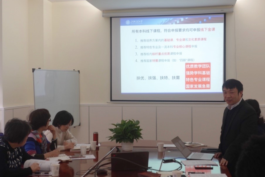 本次會議主要圍繞如何建設(shè)線上線下混合式教學(xué)一流課程展開,討論了教育部一流課程建設(shè)規(guī)劃以及在線課程推進(jìn)工作。會議根據(jù)教育部辦公廳關(guān)于開展2019年線下、線上線下混合式、社會實踐國家級一流本科課程認(rèn)定工作的通知,討論了目前課程建設(shè)情況并對下一步課程建設(shè)工作進(jìn)行了部署。隨后,余建波老師做了《助力金課-本科高校一流課程建設(shè)應(yīng)用與申報》的報告,對哪些課可申報、哪些課不可報、通過什么渠道申報、課程適合申報什么類型、填報指南等內(nèi)容做了細(xì)致的講解。