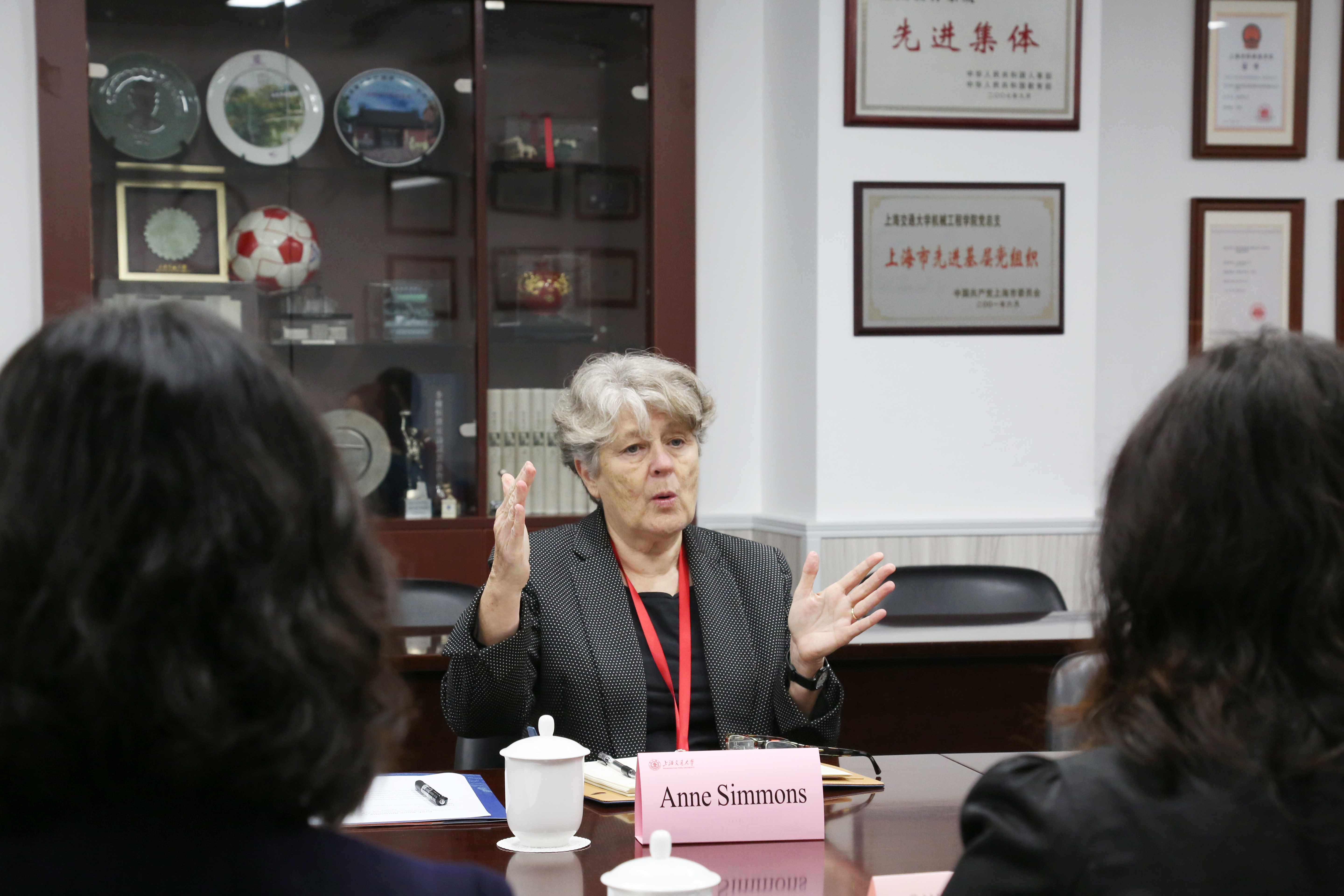 Anne SIMMONS針對(duì)學(xué)院小班教學(xué)管理、現(xiàn)行評(píng)教機(jī)制及“四位一體”育人方面進(jìn)行深入了解。她肯定了學(xué)院項(xiàng)目式教學(xué)與校企產(chǎn)學(xué)合作的培養(yǎng)模式,表示這是對(duì)學(xué)生“知識(shí)、能力和人格”的一種綜合培養(yǎng),已初步形成了價(jià)值引領(lǐng)、知識(shí)探究、能力建設(shè)、人格養(yǎng)成“四位一體”的育人理念,希望學(xué)院在未來(lái)能充分發(fā)揮合力育人的體制機(jī)制,真正實(shí)現(xiàn)并深入推進(jìn)全過(guò)程、多方位的本科生教育。