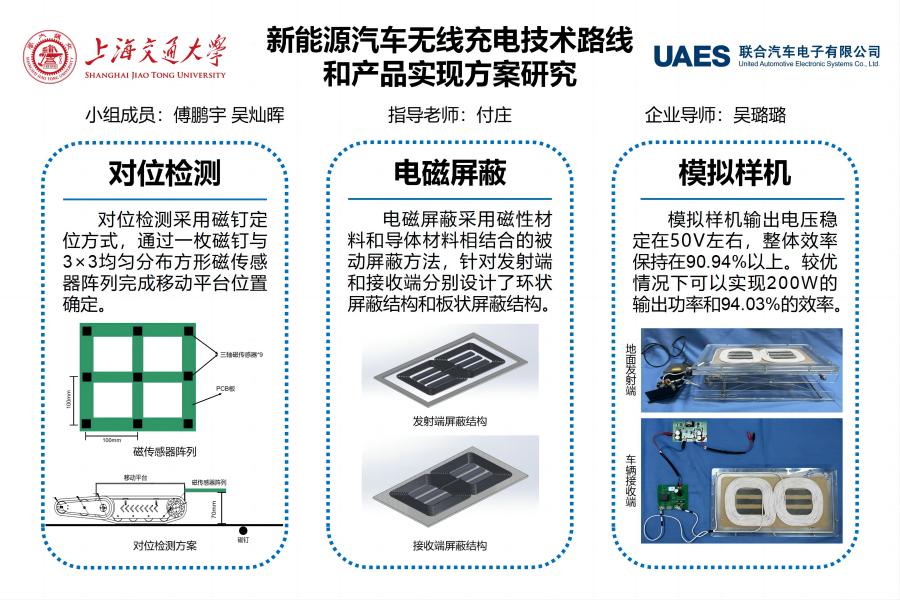 本項(xiàng)目完成了各模塊的優(yōu)化、設(shè)計(jì)、制造、加工和裝配,最終完成了一臺模擬樣機(jī)的實(shí)物制造,并且實(shí)現(xiàn)了模擬樣機(jī)的無線充電過程,能量傳輸性能、對位檢測精度、電磁屏蔽效果均滿足項(xiàng)目預(yù)期,實(shí)現(xiàn)了200W功率,最高效率94.03%的無線能量傳輸,為新能源汽車無線充電系統(tǒng)提出了一套可能的最優(yōu)方案。