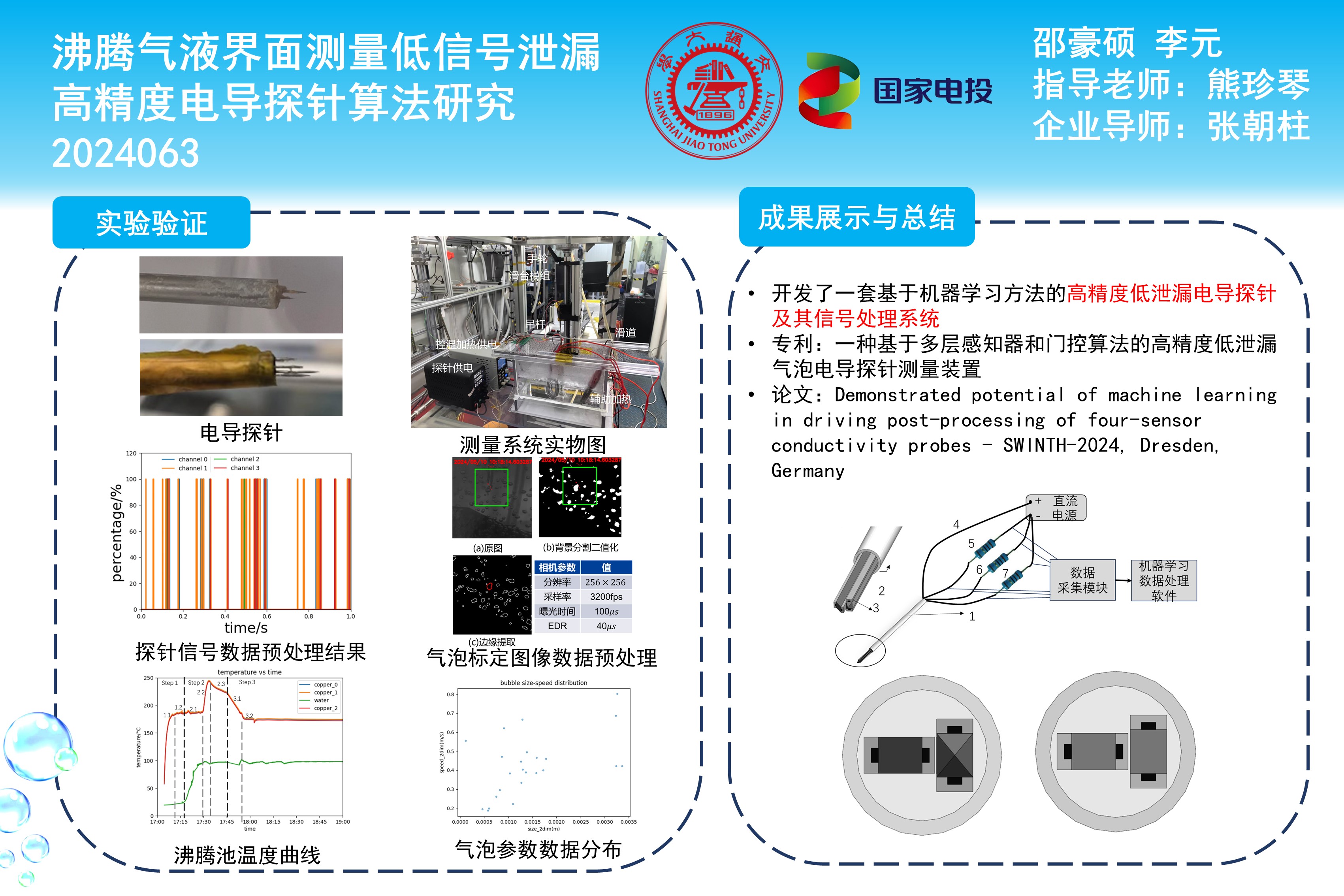 本項目已完成了物理模型建立,模擬程序開發(fā),數(shù)據(jù)集制作以及機器學(xué)習(xí)方法訓(xùn)練,并完成了電導(dǎo)探針制作及氣液沸騰界面電導(dǎo)探針測量系統(tǒng)的搭建及測試工作。在模擬數(shù)據(jù)中對機器學(xué)習(xí)方法和傳統(tǒng)方法進行比較,結(jié)果表明,機器學(xué)習(xí)在減少采樣要求和提高誤差的收斂速度方面具有較為顯著的優(yōu)勢。