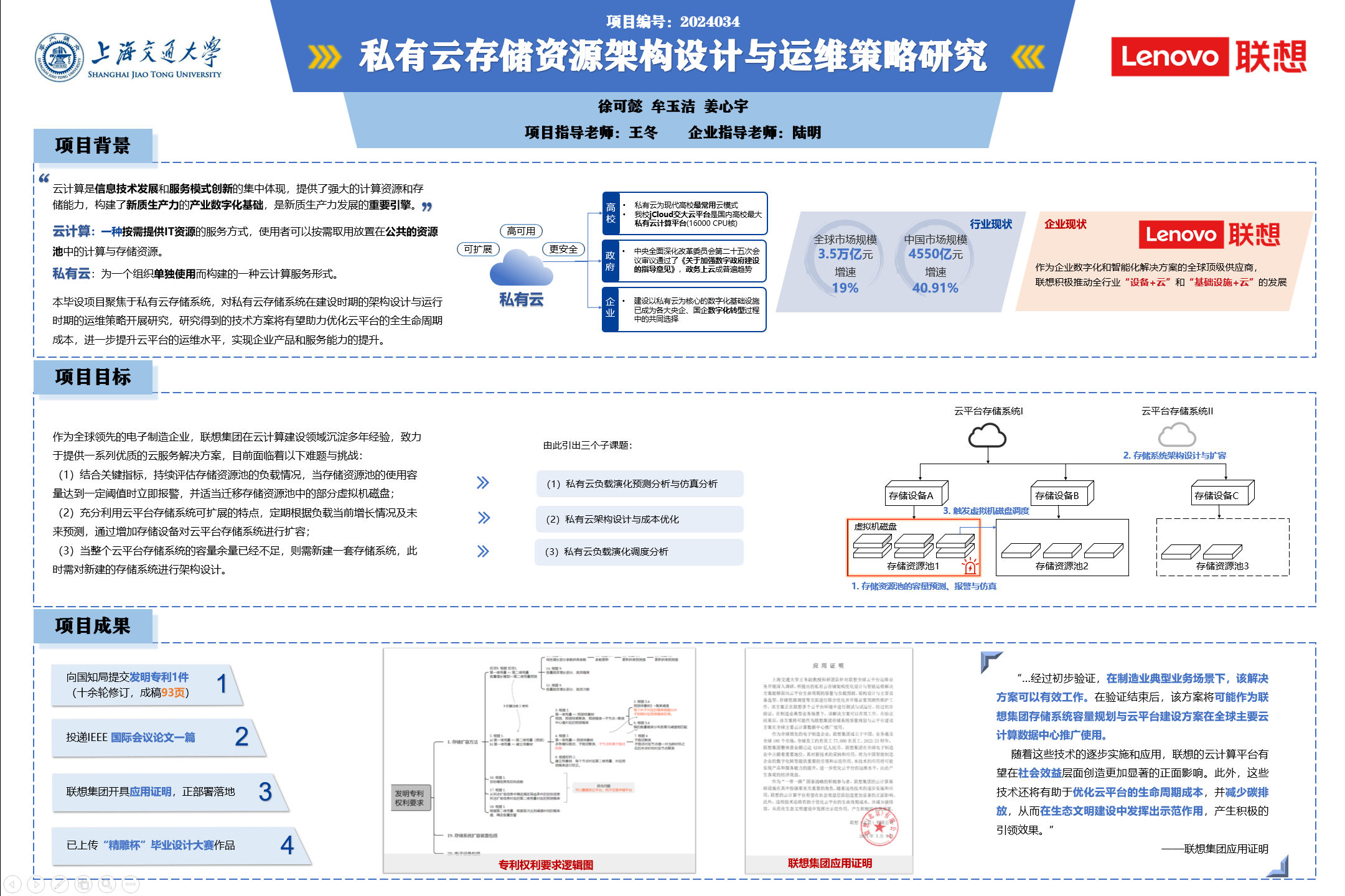 本項(xiàng)目開發(fā)的私有云存儲(chǔ)資源架構(gòu)設(shè)計(jì)與運(yùn)維系統(tǒng)能夠面向云平臺(tái)生命周期的容量預(yù)測(cè)、架構(gòu)設(shè)計(jì)與主要設(shè)備選型、存儲(chǔ)資源調(diào)度等方面進(jìn)行聯(lián)合優(yōu)化并開展必要預(yù)測(cè)性維護(hù)工作。目前本項(xiàng)目方案正在聯(lián)想多個(gè)云平臺(tái)環(huán)境中進(jìn)行測(cè)試與試運(yùn)行。經(jīng)過初步驗(yàn)證,在制造業(yè)典型業(yè)務(wù)場(chǎng)景下,本項(xiàng)目方案可以有效工作。驗(yàn)證結(jié)束后,本方案將可能作為聯(lián)想集團(tuán)存儲(chǔ)系統(tǒng)容量規(guī)劃與云平臺(tái)建設(shè)方案在全球主要云計(jì)算數(shù)據(jù)中心推廣使用。