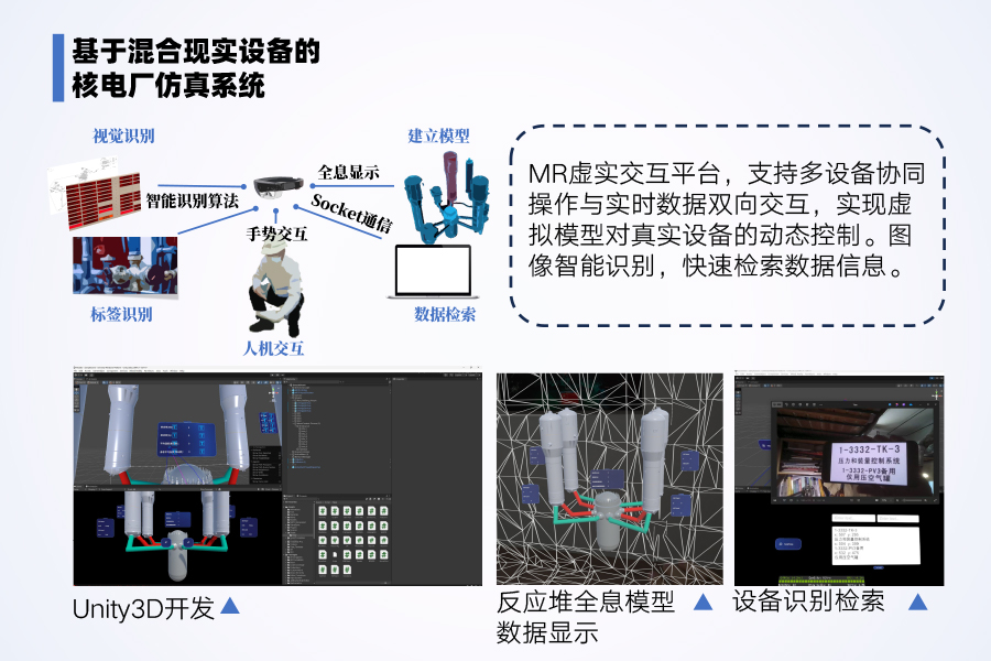項(xiàng)目的核心技術(shù)目標(biāo)分為兩部分。圖紙識(shí)別建模方面:基于YOLO等深度學(xué)習(xí)算法,實(shí)現(xiàn)核電站圖紙中文字、圖線及邏輯關(guān)系的自動(dòng)解析,目標(biāo)識(shí)別準(zhǔn)確率達(dá)90%以上,單次識(shí)別時(shí)間小于1秒;建立標(biāo)準(zhǔn)化數(shù)據(jù)接口,支持圖紙信息與仿真模型的自動(dòng)轉(zhuǎn)換,降低人工建模錯(cuò)誤率。MR仿真應(yīng)用方面:開發(fā)HoloLens2與核電站仿真數(shù)據(jù)庫(kù)的直接通信接口,消除數(shù)據(jù)傳輸中轉(zhuǎn)環(huán)節(jié),延遲低于0.5秒;實(shí)現(xiàn)多設(shè)備協(xié)同交互與手勢(shì)控制功能,同步虛擬模型狀態(tài)與現(xiàn)實(shí)設(shè)備操作;集成離線標(biāo)識(shí)識(shí)別技術(shù),通過攝像頭掃描現(xiàn)實(shí)設(shè)備標(biāo)簽并實(shí)時(shí)調(diào)取數(shù)據(jù),提升巡檢效率。最終構(gòu)建一套高效、安全的智能核電站運(yùn)維輔助系統(tǒng)。