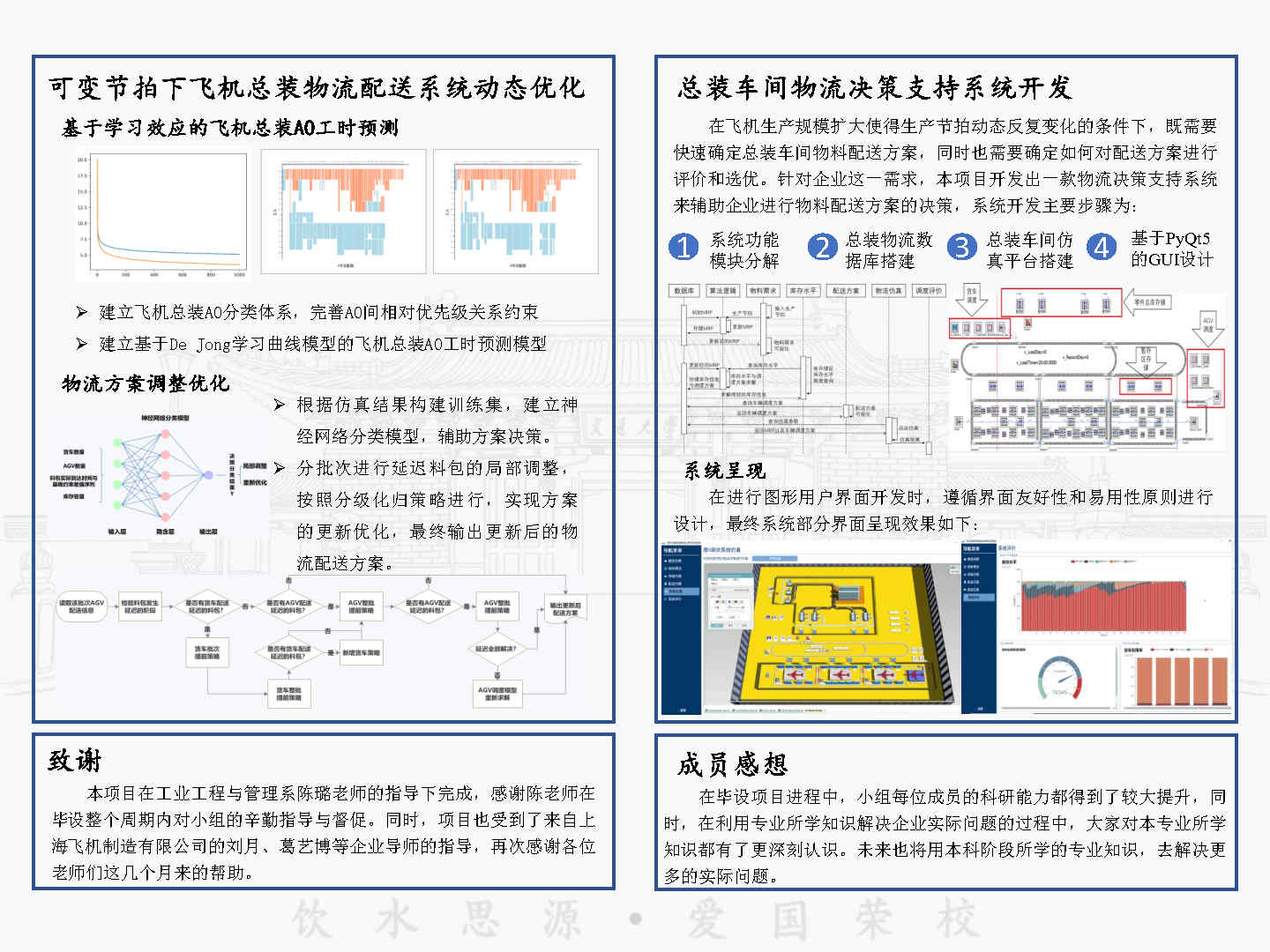 在可變節(jié)拍下的飛機(jī)總裝物流配送動(dòng)態(tài)優(yōu)化方向,建立了基于學(xué)習(xí)曲線(xiàn)效應(yīng)的工時(shí)預(yù)測(cè)模型;通過(guò)仿真數(shù)據(jù)建立神經(jīng)網(wǎng)絡(luò)分類(lèi)模型,實(shí)現(xiàn)方案選擇的智能決策;設(shè)計(jì)分批分級(jí)局部調(diào)整方法,實(shí)現(xiàn)物流配送方案的更新。