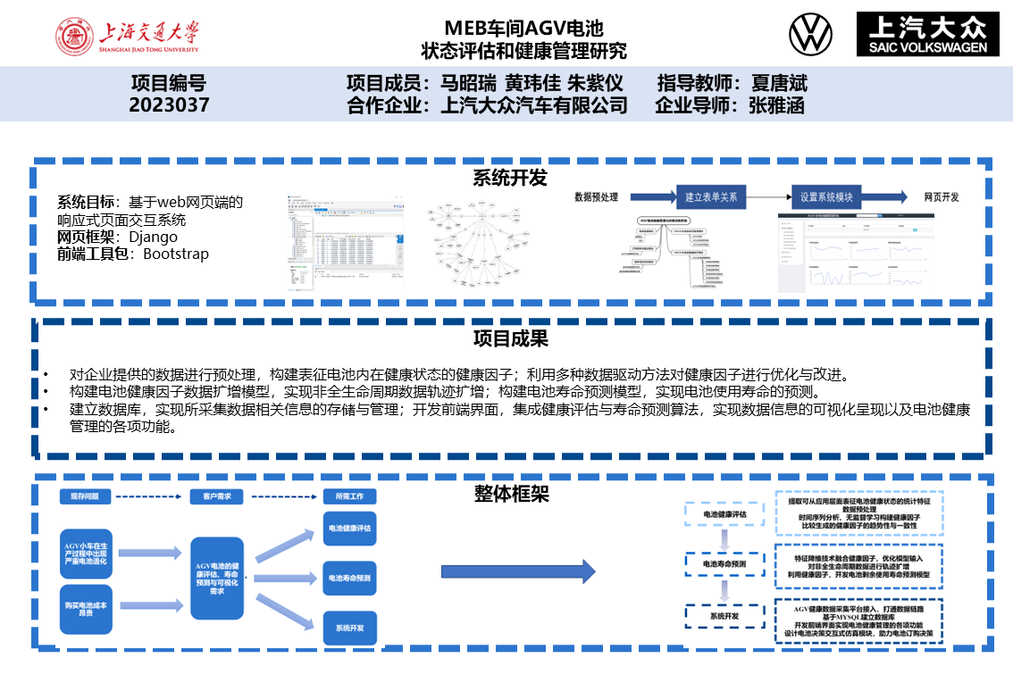 上汽大眾MEB車間的電池裝配線有160臺左右中型AGV導引車服務于新能源汽車電池裝配過程。由于生產線環(huán)節(jié)環(huán)環(huán)相扣,如果AGV在生產過程中出現(xiàn)嚴重電池退化,則會導致生產工序無法正常運行,進而會影響到MEB平臺的生產節(jié)拍。因此,需要有效利用MEB車間的大量工業(yè)數(shù)據(jù),通過多種算法對AGV電池的健康信息進行整合與分析,提升數(shù)據(jù)的利用效率,提高AGV電池健康管理模式的智能化水平;同時,需要建立有效的電池健康信息與過程數(shù)據(jù)管理系統(tǒng),實現(xiàn)數(shù)據(jù)采集、管理、可視化呈現(xiàn)等功能,最終實現(xiàn)AGV電池健康管理的數(shù)字化與信息化。