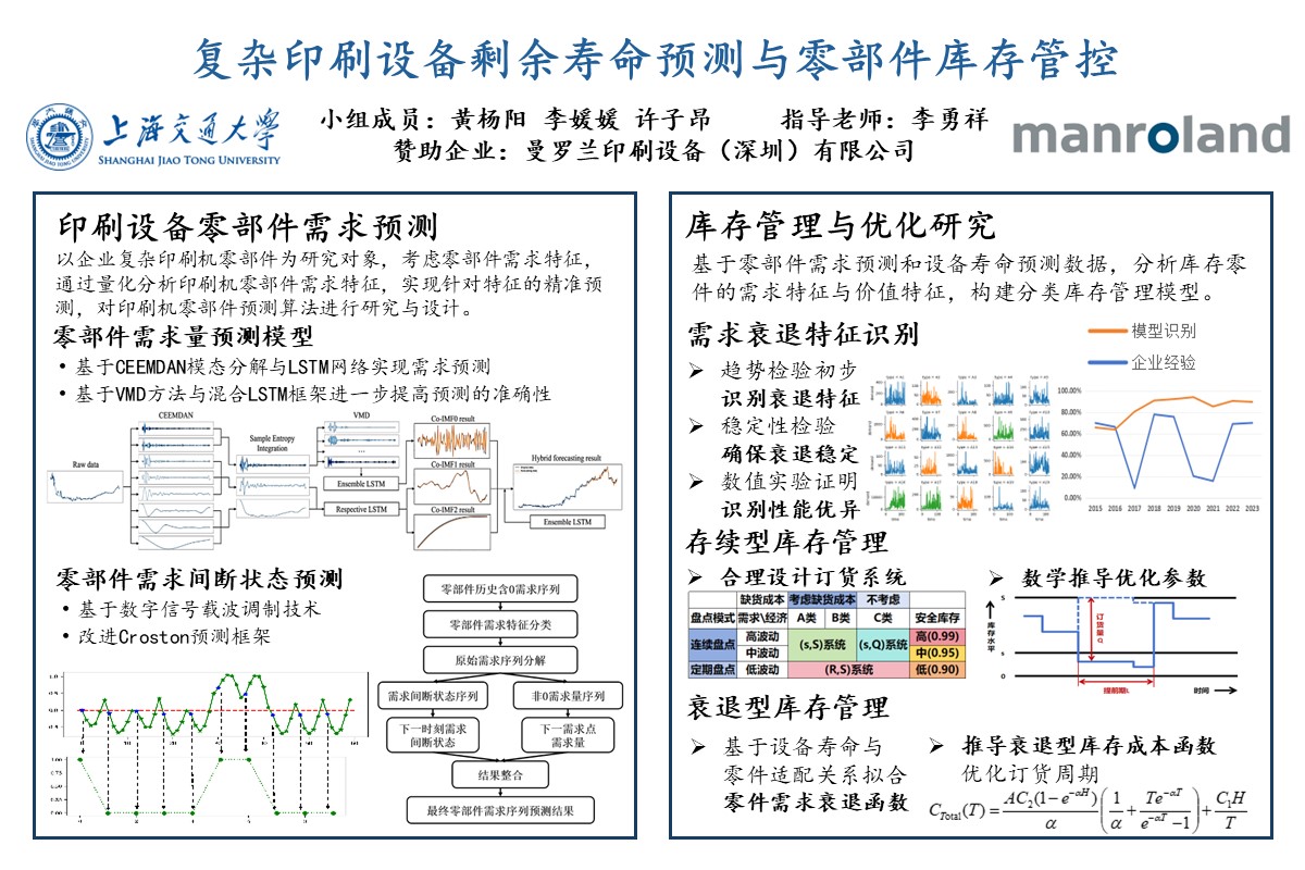 曼羅蘭平張印刷系統(tǒng)有限公司成立于1871年,是全球領(lǐng)先的,服務(wù)于商業(yè)印刷、包裝印刷和出版應(yīng)用領(lǐng)域的單張紙膠印機(jī)及相關(guān)技術(shù)的制造商。企業(yè)商用印刷機(jī)產(chǎn)品具有高度專業(yè)化和定制化的特點,其零部件需求受多種因素影響且不穩(wěn)定,缺乏有效的庫存管理方案,依賴人工經(jīng)驗存在較高風(fēng)險,可能導(dǎo)致庫存積壓和經(jīng)營成本增加。本項目旨在為合作企業(yè)提供科學(xué)有效的印刷機(jī)剩余壽命預(yù)測、零部件需求預(yù)測和庫存管理方案,提高企業(yè)經(jīng)營效率和市場競爭力。
