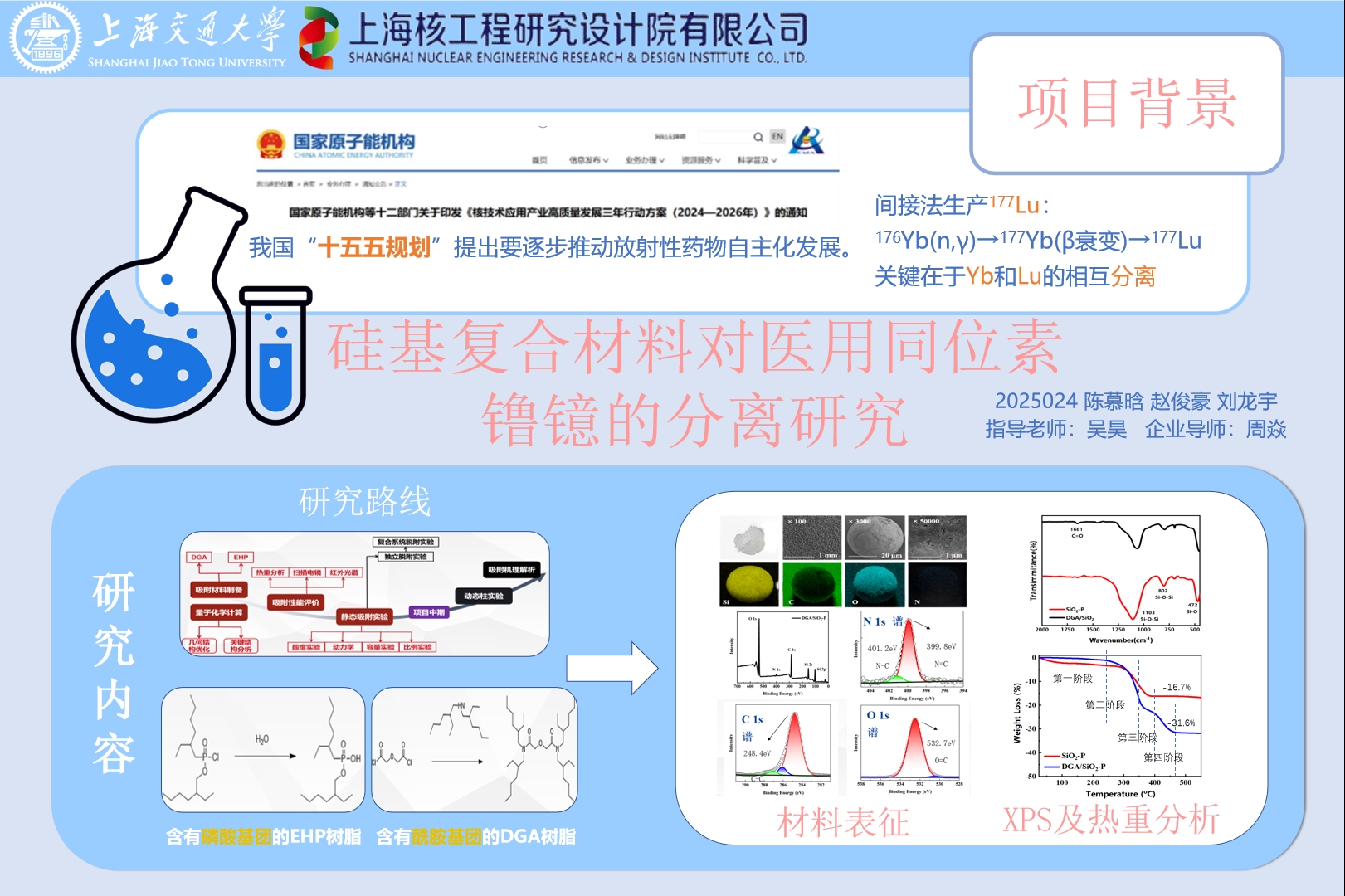 基于177Lu生產(chǎn)的“間接法”工藝,開發(fā)一種將無載體177Lu產(chǎn)物從反應(yīng)后靶件溶解液分離出來的工藝。項目以合成兩種硅基復(fù)合材料吸附劑,即含酰胺類基團(tuán)吸附材料DGA與含磷酸類基團(tuán)吸附材料EHP為基礎(chǔ),通過吸附材料合成、靜態(tài)試驗、吸附材料表征、DFT計算等實驗與計算手段探究合適的分離途徑,并以此類實驗數(shù)據(jù)為基礎(chǔ)進(jìn)行動態(tài)吸附柱實驗,灌裝離子分離色譜柱,實現(xiàn)分離工藝的開發(fā)。
