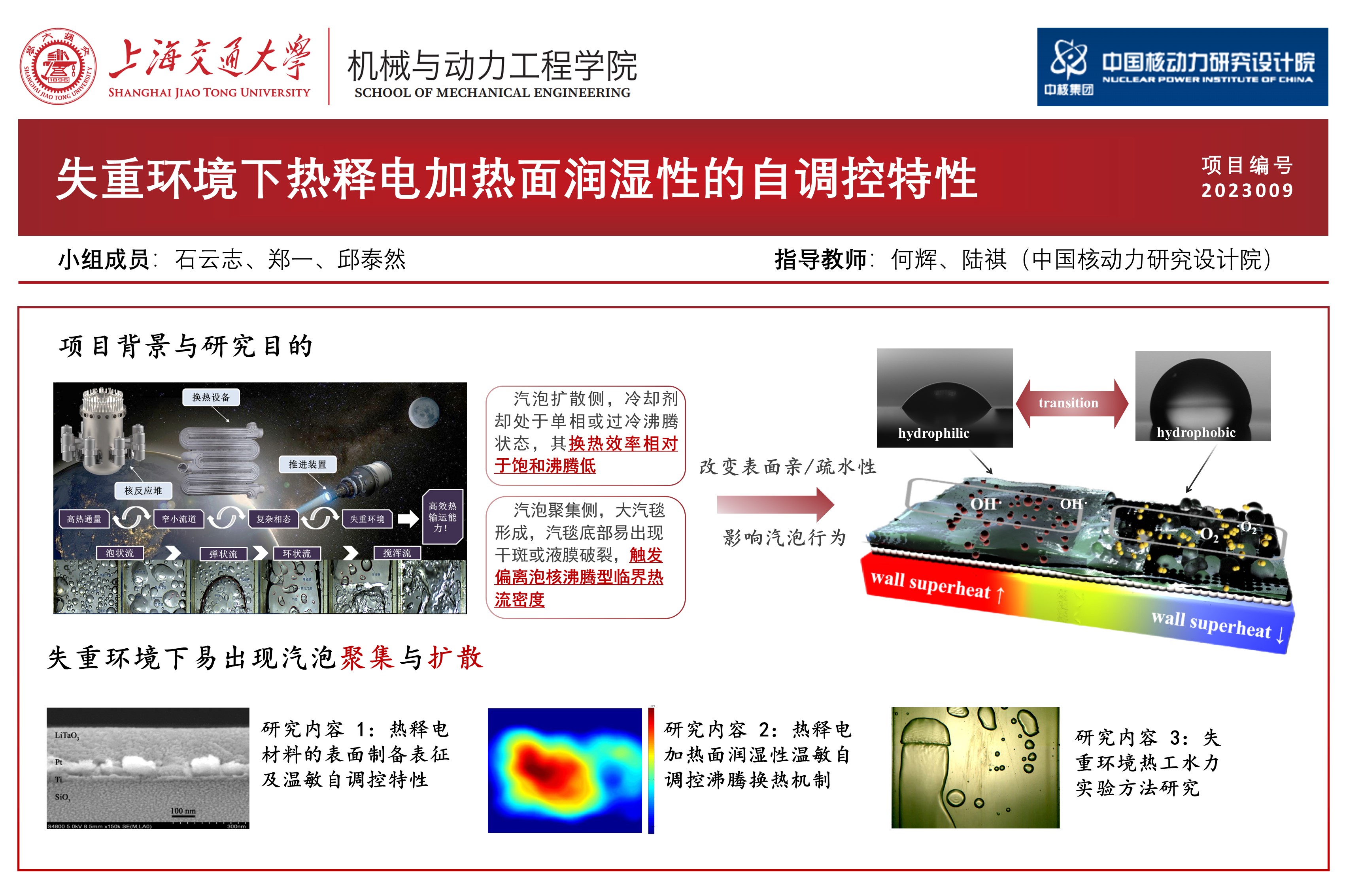 本項(xiàng)目成功在金屬鈦襯底上制備了微米厚度的高致密熱釋電涂層,并完成了對熱釋電涂層晶體的結(jié)構(gòu)分析、涂層表面與斷面圍觀形貌分析,得到了溫度變化與表面自由基產(chǎn)生量的關(guān)系曲線;成功設(shè)計(jì)并搭建了池沸騰試驗(yàn)臺(tái)架,并在穩(wěn)態(tài)下獲得了熱釋電涂層對沸騰傳熱增強(qiáng)的定量關(guān)系,非穩(wěn)態(tài)下獲得了熱釋電材料基于溫度負(fù)反饋的浸潤性自適應(yīng)變化效應(yīng)的定量關(guān)系,評估了各影響因素對實(shí)驗(yàn)結(jié)果的影響,總結(jié)出了熱釋電材料表面浸潤性溫敏自適應(yīng)調(diào)節(jié)的定量關(guān)系;成功設(shè)計(jì)并裝配了微重力環(huán)境的模擬裝置,探究了熱釋電材料在變溫及微重力環(huán)境下的浸潤性改變的機(jī)理,并利用化學(xué)方法對微重力環(huán)境下熱釋電材料的浸潤性進(jìn)行了分析。