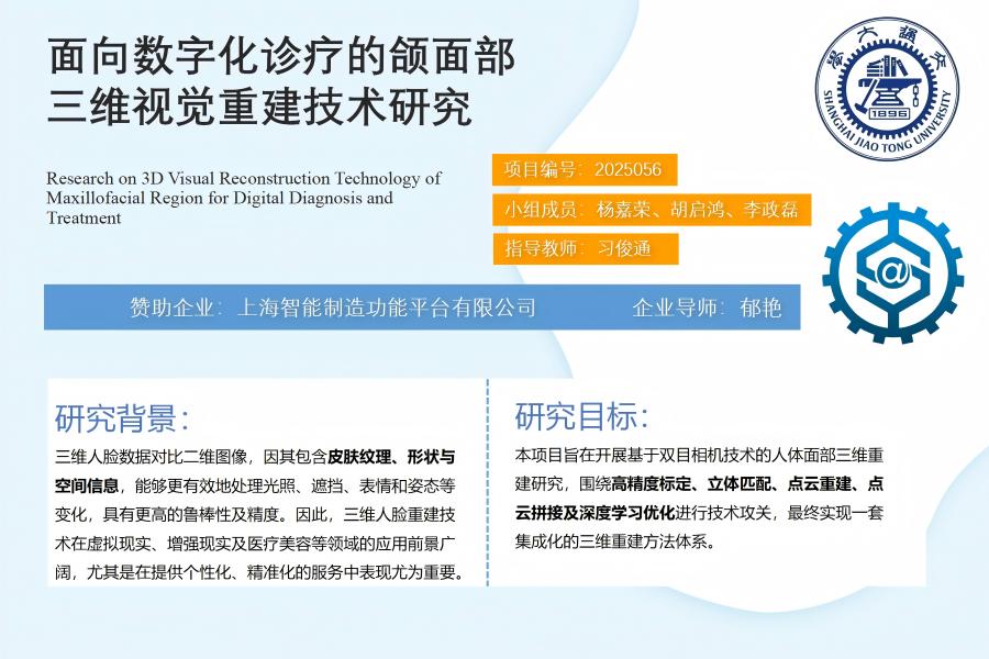 三維人臉數(shù)據(jù)對比二維圖像,因其包含皮膚紋理、形狀與空間信息,能夠更有效地處理光照、遮擋、表情和姿態(tài)等變化,具有更高的魯棒性及精度,因此三維人臉重建技術(shù)在虛擬現(xiàn)實(shí)、增強(qiáng)現(xiàn)實(shí)及醫(yī)療美容等領(lǐng)域的應(yīng)用前景廣闊。本項(xiàng)目旨在開展基于雙目相機(jī)技術(shù)的人體面部三維重建研究,圍繞雙目相機(jī)高精度標(biāo)定、立體匹配、人臉點(diǎn)云重建、人臉點(diǎn)云拼接及深度學(xué)習(xí)優(yōu)化進(jìn)行技術(shù)攻關(guān),最終實(shí)現(xiàn)一套集成化的三維重建方法體系。通過該體系的開發(fā)與優(yōu)化,提升面部重建精度與效率,為人臉識(shí)別、虛擬現(xiàn)實(shí)、醫(yī)療美容等領(lǐng)域提供技術(shù)支持。