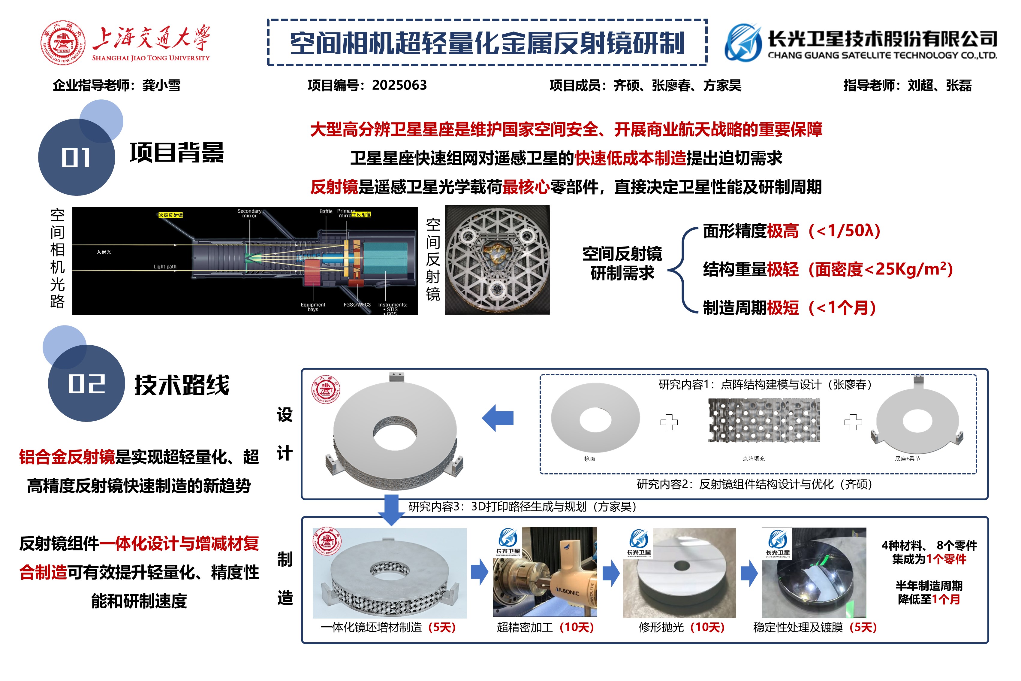 隨著全球?qū)Φ赜^測需求的激增,高分辨率遙感衛(wèi)星星座的規(guī)模化部署成為各國航天領(lǐng)域競爭的新焦點。反射鏡作為空間相機的核心光學(xué)組件,傳統(tǒng)設(shè)計方案因坯料制備周期長、硬脆特性導(dǎo)致的加工困難,使得反射鏡制備周期普遍超過半年,衛(wèi)星星座建設(shè)面臨著反射鏡研制周期的制約。隨著單點金剛石車等超精密加工技術(shù)的成熟,全鋁反射鏡加工面形精度已可實現(xiàn)1/50λ,這為反射鏡在可見光相機應(yīng)用提供了可能,有效解決反射鏡制備難度大、周期長的問題,技術(shù)可行性高。
