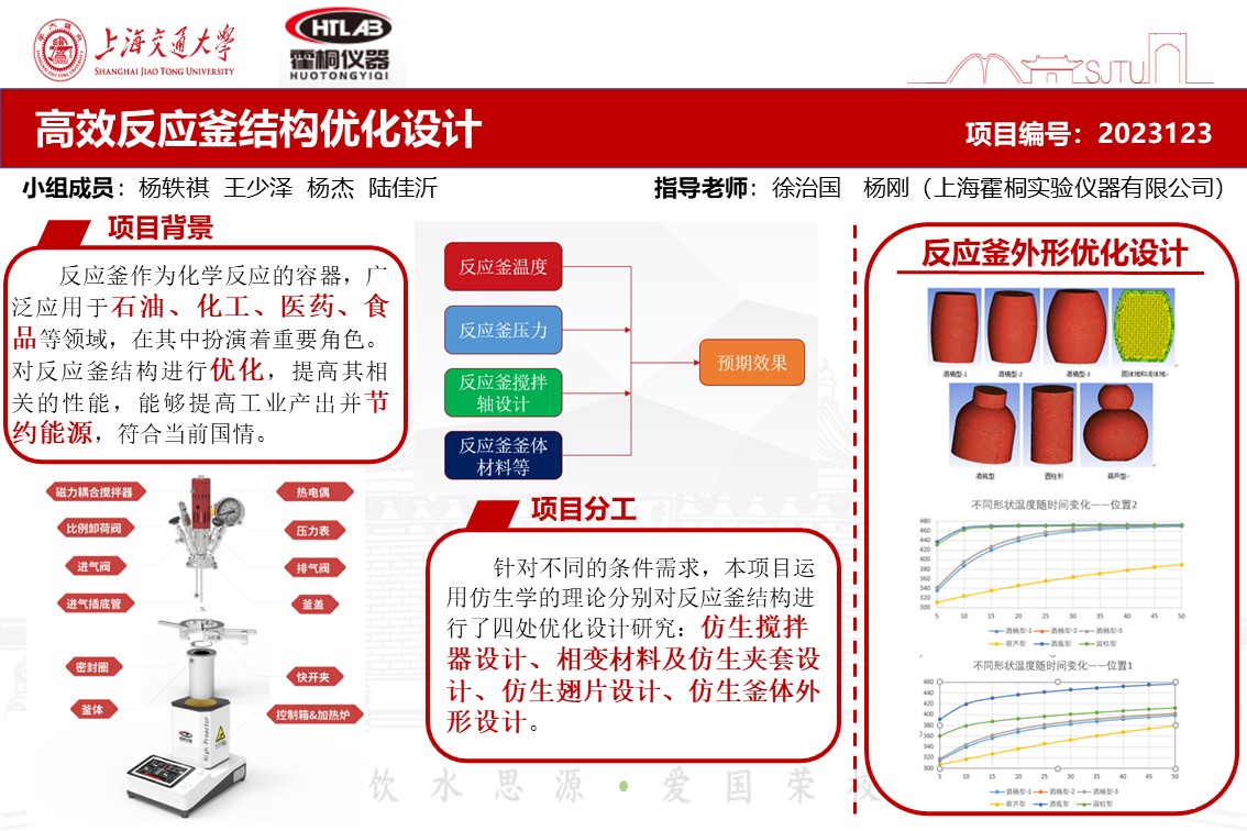 反應(yīng)釜作為化學(xué)反應(yīng)的容器,廣泛應(yīng)用于石油、化工、橡膠、農(nóng)藥、染料、醫(yī)藥、食品等領(lǐng)域,硫化、硝化、氫化、烴化、聚合、縮合等工藝過(guò)程。適合各種不同的反應(yīng)條件,可供各種物料在高溫高壓下進(jìn)行化學(xué)反應(yīng)。目前現(xiàn)有的反應(yīng)釜仍然存在著導(dǎo)熱效率不夠高、反應(yīng)受熱不均勻和溫度控制不溫度等問(wèn)題,在本項(xiàng)目中通過(guò)借鑒仿生結(jié)構(gòu),分別優(yōu)化設(shè)計(jì)反應(yīng)釜的整體外形、雙層夾套、換熱翅片和攪拌結(jié)構(gòu),改善反應(yīng)釜的性能,對(duì)實(shí)際制造加工有指導(dǎo)意義。