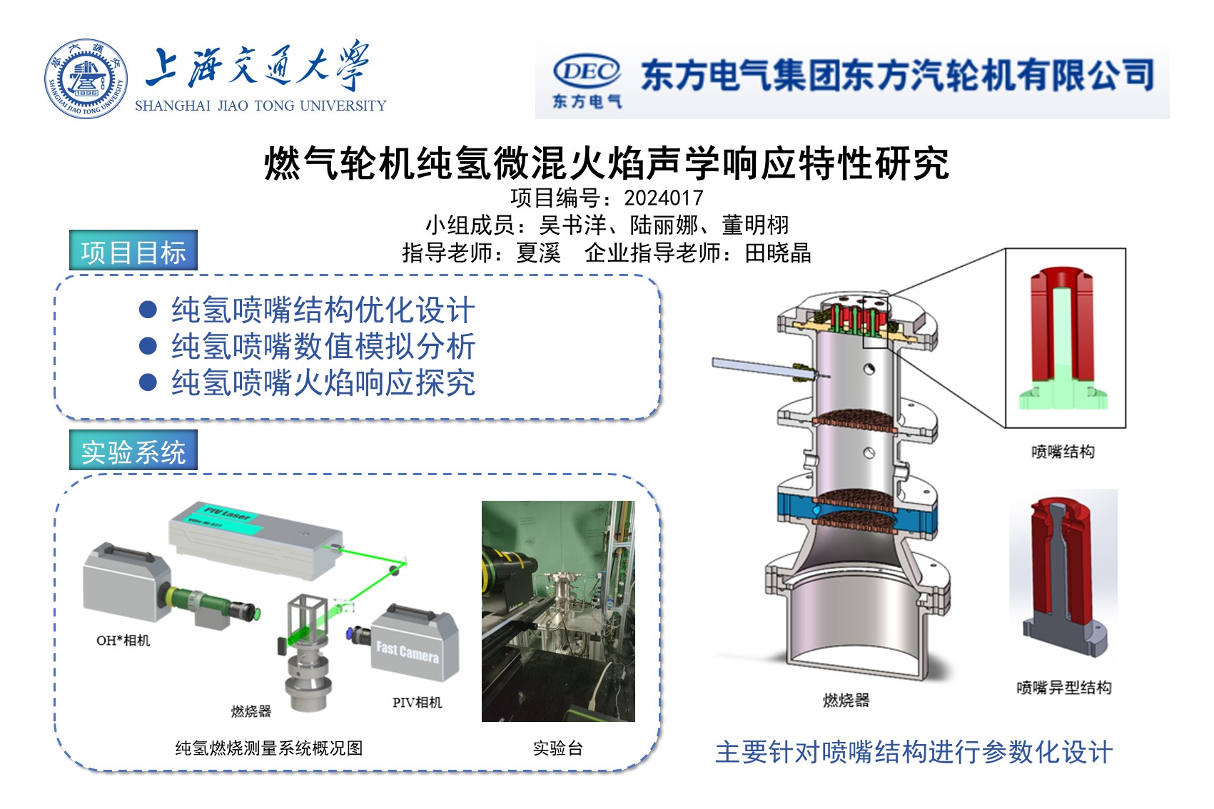 在氫燃料燃?xì)廨啓C(jī)運(yùn)行過(guò)程中,噪聲是不可避免的問(wèn)題。在氫氣燃燒中,燃燒室可能會(huì)發(fā)生諧振頻率的模式切換,影響火焰運(yùn)行,同時(shí)火焰在動(dòng)態(tài)穩(wěn)定到不穩(wěn)定燃燒過(guò)程中,氫氣的增加會(huì)產(chǎn)生間歇?jiǎng)恿W(xué)區(qū)域。此外,氫富集會(huì)增加燃燒動(dòng)力學(xué)誘導(dǎo)的閃回傾向,促進(jìn)周期性閃回事件和熱聲不穩(wěn)定性的耦合。本課題將以東方汽輪機(jī)有限公司的需求為目標(biāo),從微預(yù)混純氫燃燒存在的嚴(yán)重的熱聲振蕩問(wèn)題出發(fā),結(jié)合企業(yè)對(duì)火焰穩(wěn)定性、額定功率、污染物排放限制等要求對(duì)燃燒器結(jié)構(gòu)進(jìn)行數(shù)值模擬、實(shí)驗(yàn)探究驗(yàn)證與參數(shù)優(yōu)化。