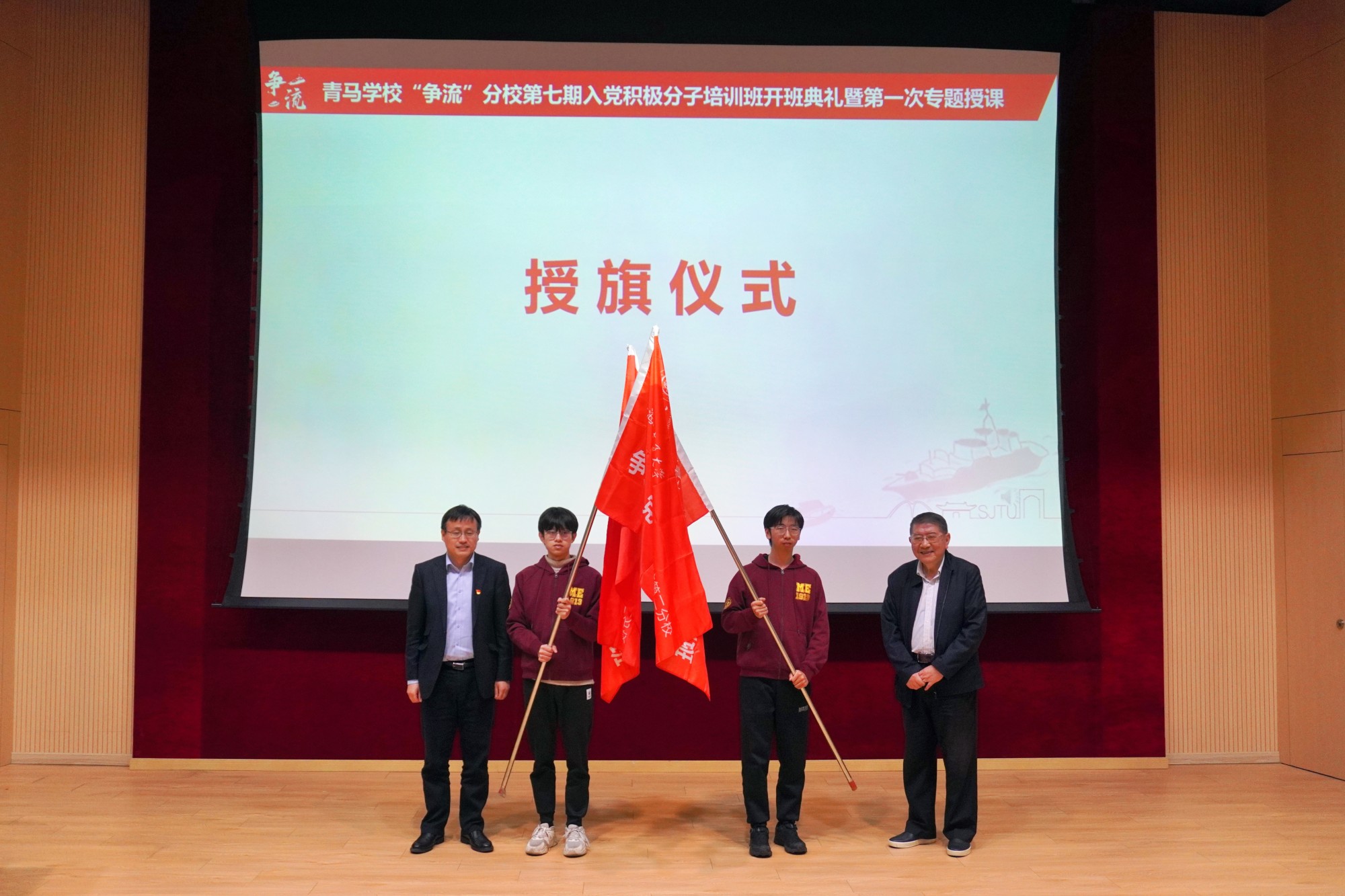 會(huì)上舉行了授旗和贈(zèng)書(shū)儀式。培訓(xùn)班副班主任李哲介紹了本期培訓(xùn)班總體安排,期望培訓(xùn)班學(xué)員抓住學(xué)習(xí)機(jī)會(huì),通過(guò)專題授課、網(wǎng)絡(luò)黨校、實(shí)踐教學(xué)、志愿服務(wù)等形式,提升政治理論素養(yǎng),堅(jiān)持學(xué)思用貫通、知信行統(tǒng)一。