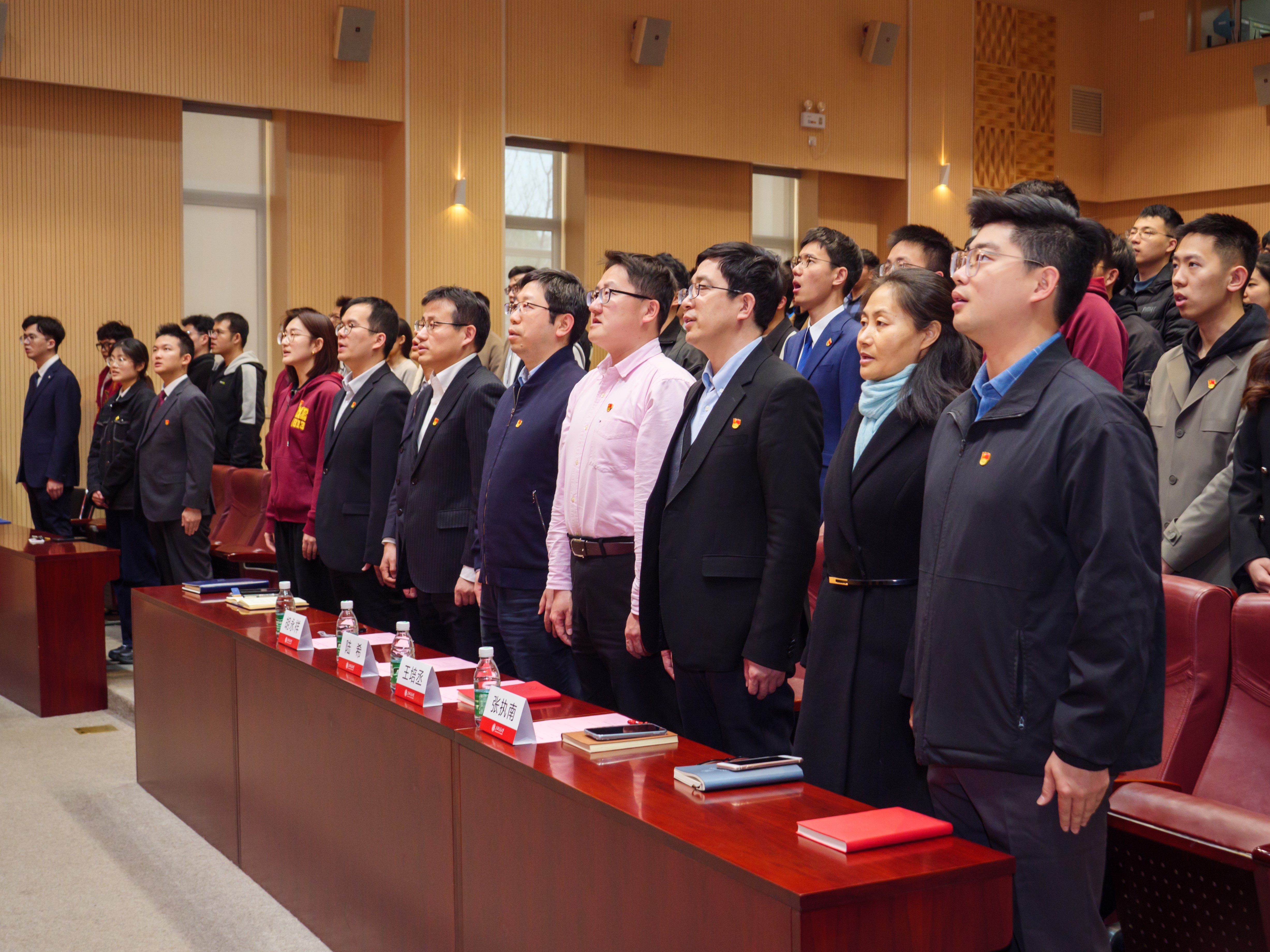 全體畢業(yè)生黨員在鮮紅的黨旗前莊嚴(yán)肅立,高舉右拳,重溫入黨誓詞。