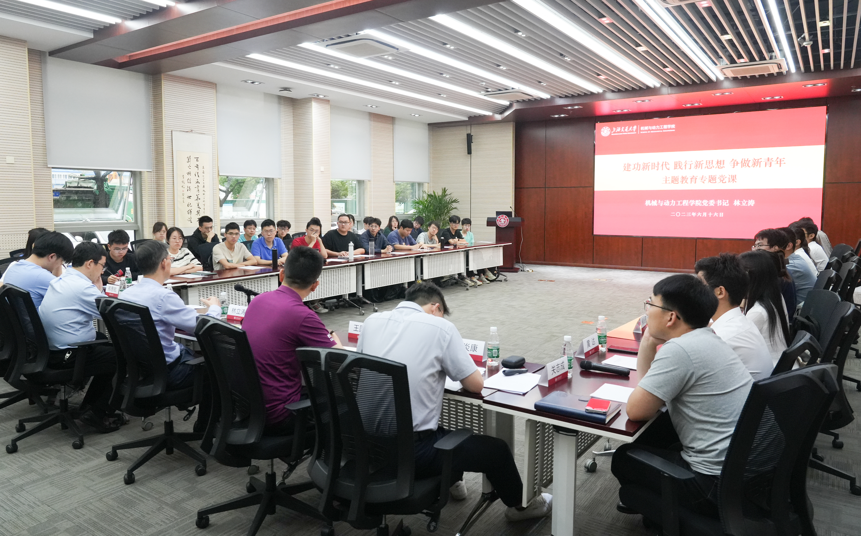為深入開展學(xué)習(xí)貫徹習(xí)近平新時(shí)代中國特色社會主義思想主題教育,貫徹落實(shí)黨的二十大精神,6月16日,機(jī)械與動力工程學(xué)院黨委書記林立濤以“建功新時(shí)代、學(xué)習(xí)新思想、爭做新青年”為主題講授黨課,并圍繞學(xué)生會工作開展座談交流。學(xué)院黨委副書記張執(zhí)南、團(tuán)委負(fù)責(zé)教師及團(tuán)學(xué)骨干參會學(xué)習(xí)。