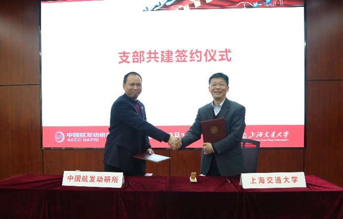 陶建軍和杜朝輝分別代表雙方簽署608所渦輪部和航空發(fā)動(dòng)機(jī)研究院黨支部共建協(xié)議。陳競煒和歐陽華分別代表雙方簽署聯(lián)合創(chuàng)新中心協(xié)議。李維和奚立峰共同為聯(lián)合創(chuàng)新中心揭牌。奚立峰為李維頒發(fā)上海交通大學(xué)兼職研究員聘書。