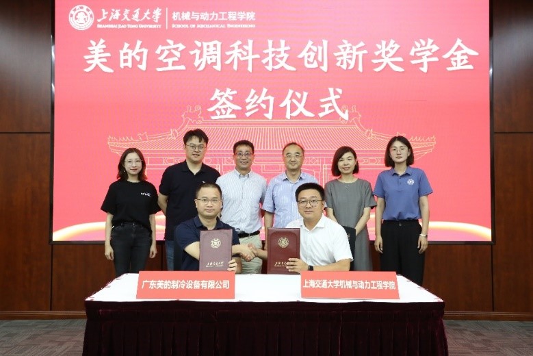 為激勵青年學(xué)子大膽創(chuàng)新、追求卓越,廣東美的制冷設(shè)備有限公司捐資設(shè)立“美的空調(diào)科技創(chuàng)新獎學(xué)金”。李金波、朱磊共同簽署了捐贈協(xié)議。
