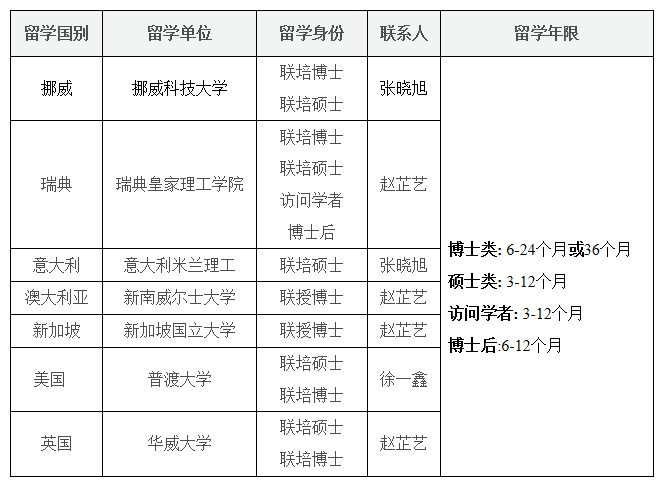 我校的國(guó)家留學(xué)基金委“可持續(xù)能源高效利用”創(chuàng)新人才國(guó)際合作培養(yǎng)項(xiàng)目現(xiàn)面向能源相關(guān)領(lǐng)域研究生及教師選拔人員,項(xiàng)目獲批人員在外留學(xué)費(fèi)用將由國(guó)家留學(xué)基金委按國(guó)家公派留學(xué)標(biāo)準(zhǔn)進(jìn)行資助。項(xiàng)目依托高校間合作協(xié)議進(jìn)行,可申報(bào)留學(xué)單位及擬招募對(duì)象如下: