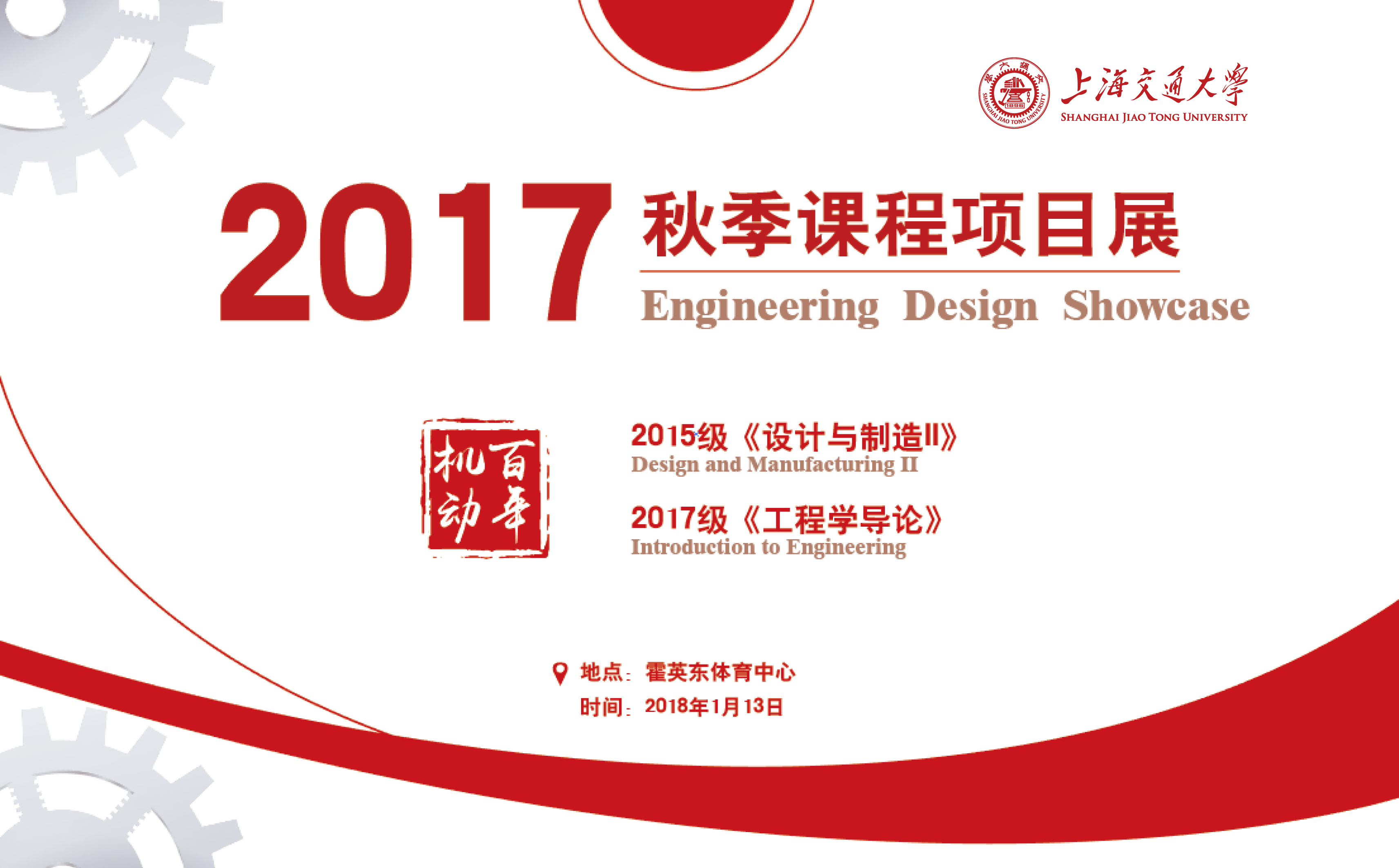 上海交大機(jī)械與動力工程學(xué)院2017年秋季學(xué)期課程項(xiàng)目成果展如約而至,屆時(shí)將有來自《工程學(xué)導(dǎo)論》、《設(shè)計(jì)與制造II》兩門課程的130個(gè)創(chuàng)意項(xiàng)目精彩呈現(xiàn)。期待您的蒞臨!