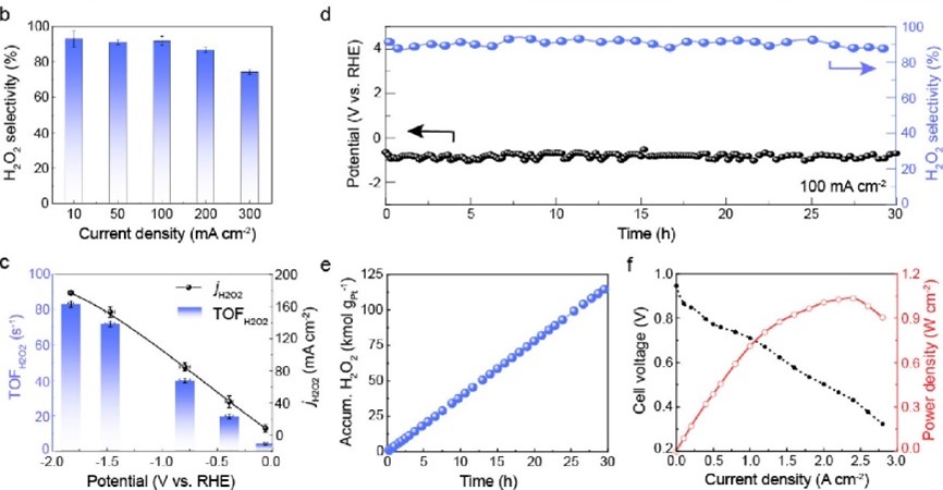 本工作中,作者制備了兩種碳納米管負(fù)載的Pt-N-C單原子催化劑用于ORR,在0.3 VRHE 電位下,實現(xiàn)了H2O2產(chǎn)物選擇性從10%至85%的調(diào)節(jié)。結(jié)合電催化周轉(zhuǎn)頻率TOF測定,以及軟/硬線X射線吸收譜XAFS、核殼分離納米粒子增強拉曼光譜SHINERS、DFT理論計算分析,證明了Pt-N-C結(jié)構(gòu)中第一殼層的吡啶-N和吡咯-N配位有利于O2轉(zhuǎn)化為H2O,而引入第二層石墨-N摻雜可以微調(diào)Pt中心位點的電子結(jié)構(gòu),導(dǎo)致*OOH的結(jié)合強度減弱,從而主導(dǎo)了O2轉(zhuǎn)化為H2O2過程。該工作揭示了單原子位點附近微觀結(jié)構(gòu)和性能間的構(gòu)效關(guān)系,為高選擇性和高穩(wěn)定性單原子類催化劑設(shè)計提供了研究基礎(chǔ)。