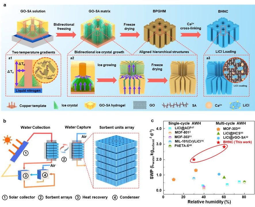 雙定向分級多孔結(jié)構(gòu)吸附材料的制備及規(guī)模化空氣取水性能