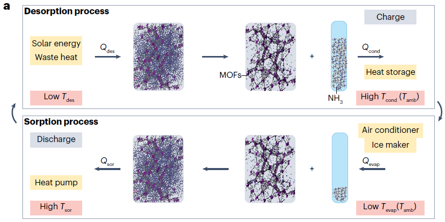 MOF-氨工質(zhì)對在極端氣候下用于熱能轉(zhuǎn)換和儲存的示意圖