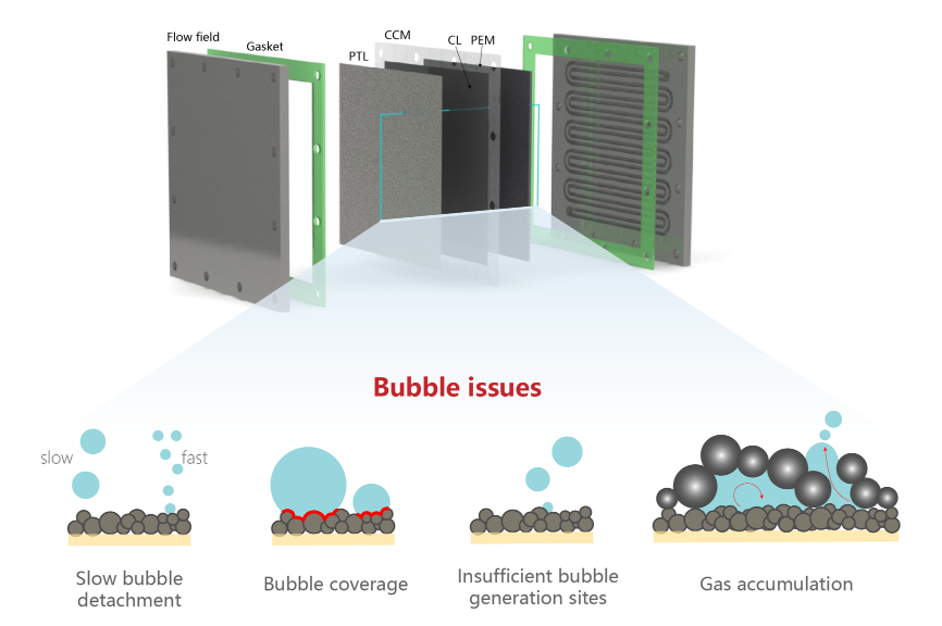 PEM電解池中的幾類(lèi)氣泡問(wèn)題示意圖