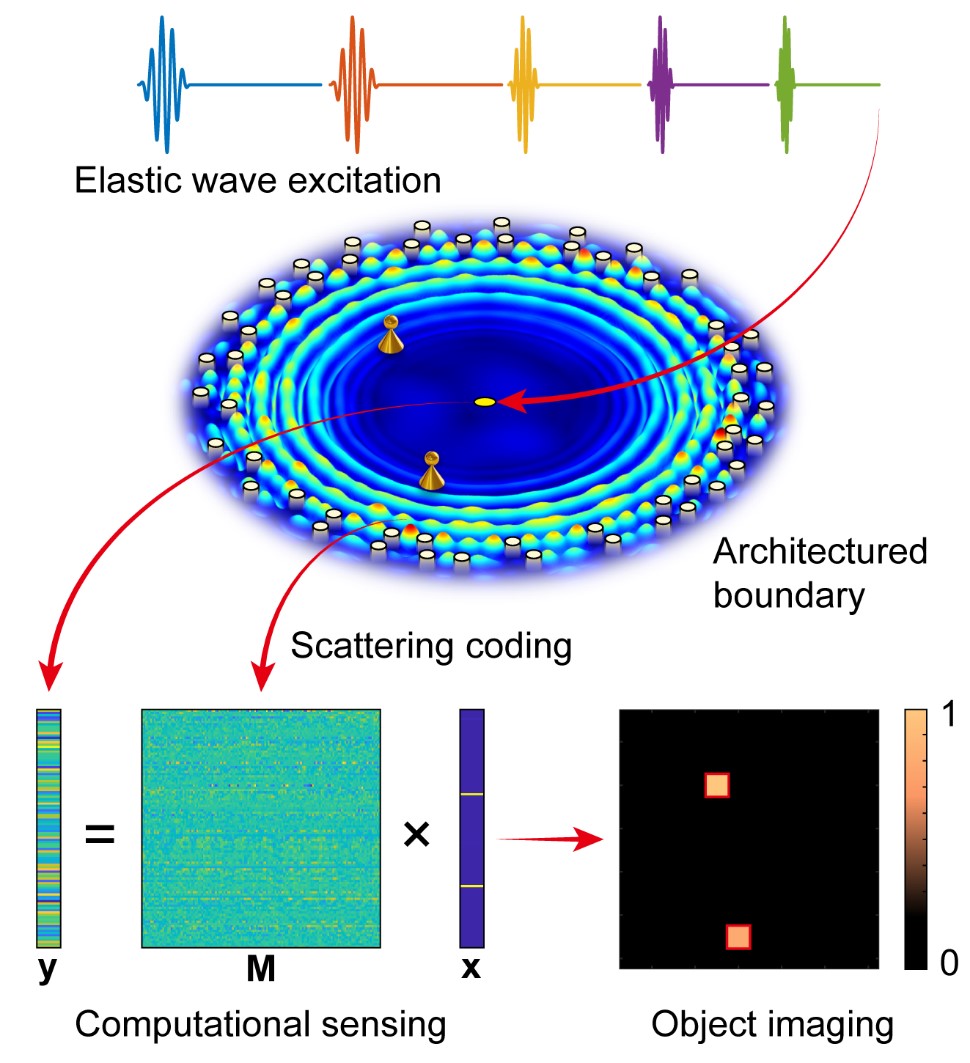 近日,上海交大機(jī)械與動(dòng)力工程學(xué)院振動(dòng)、沖擊、噪聲研究所何清波教授、彭志科教授課題組在Cell Press旗下Cell Reports Physical Science上發(fā)表題為“Scattering-coded architectured boundary for computational sensing of elastic waves”的論文,提出了基于散射編碼結(jié)構(gòu)化邊界的彈性波計(jì)算感知方法,突破了單換能器目標(biāo)定位技術(shù)難題。博士后姜添曦、廖昕昕為論文共同第一作者,何清波教授為通訊作者。