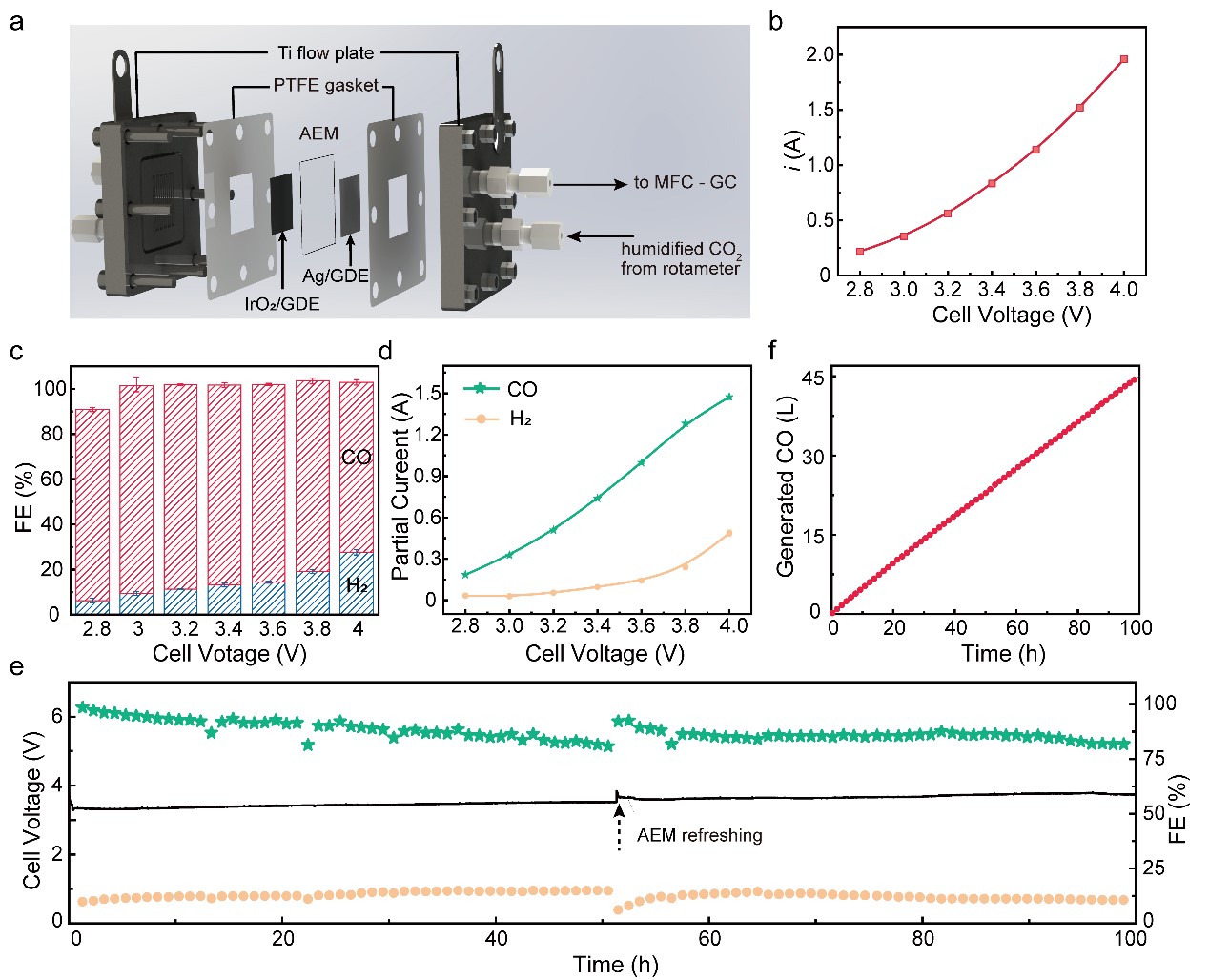 圖2. 協(xié)同CO2傳質(zhì)、界面電場(chǎng)、電極拓?fù)浣Y(jié)構(gòu)優(yōu)化的電解槽器件設(shè)計(jì)