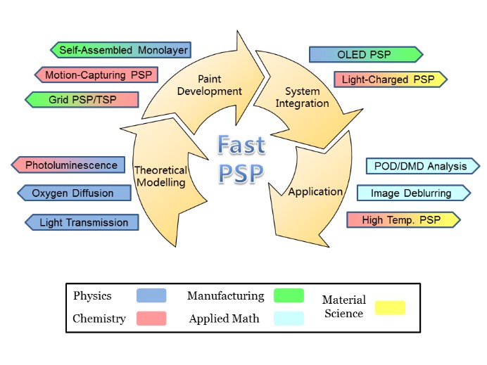 課題組近年來(lái)針對(duì)快響應(yīng)PSP測(cè)量原理、方法及應(yīng)用開(kāi)展了廣泛研究,相繼在Experiments in Fluids、Physics of Fluids、AIAA Journal 、Sensors & Actuators A/B、Measurement Science & Technology 等期刊上發(fā)表論文。研究成果已在直升機(jī)、高超聲速飛行器與航空發(fā)動(dòng)機(jī)等領(lǐng)域的基礎(chǔ)研究與型號(hào)測(cè)試中得到成功應(yīng)用,并得到國(guó)家自然基金杰青項(xiàng)目與面上項(xiàng)目的資助。
