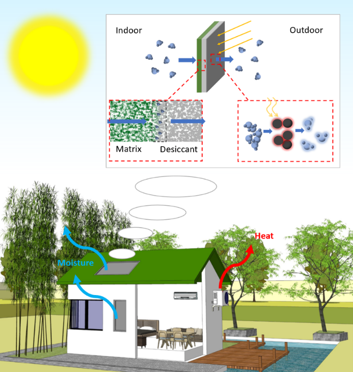 近日,制冷與低溫工程研究所王如竹教授團隊在Cell子刊iScience發(fā)表了題目為“A Moisture Penetrating Humidity Pump Directly Powered by One Sun Illumination”的研究論文,提出了一種基于透濕板的新式固體濕泵,該透濕板可以在一個太陽光強照射的條件下讓室內(nèi)的水蒸氣透過板材傳輸?shù)绞彝猓_(dá)到室內(nèi)除濕的效果。該濕泵有希望與建筑材料(如墻體/屋頂)整合,為未來綠色建筑的發(fā)展提供新方向。本文的第一作者是博士研究生曹畢野和博士后涂耀東,通訊作者是王如竹教授。
