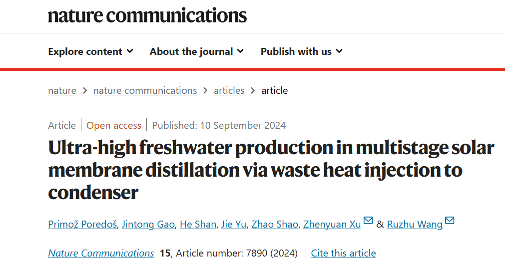 ITEWA團(tuán)隊(duì)提出基于熱增壓強(qiáng)化的多級(jí)太陽能膜蒸餾策略,提升海水淡化產(chǎn)率