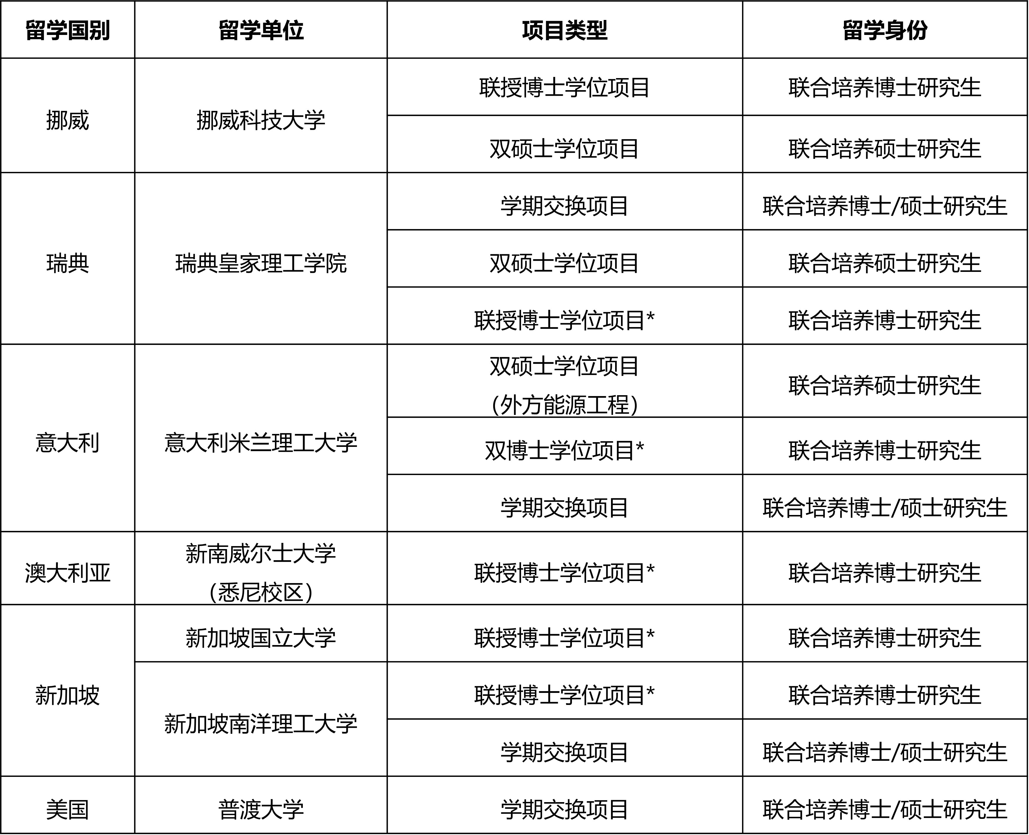 重要提醒:帶*的留學單位屬于上海交通大學校級國際聯授/雙博士學位項目,須先獲得相關校級國際聯授/雙博士學位項目的錄取資格,才可申請“可持續(xù)能源與儲能”創(chuàng)新型人才國際合作培養(yǎng)項目資助。關于校級國際聯授/雙博士學位項目申請,詳見學校研究院相關鏈接https://www.gs.sjtu.edu.cn/post/detail/Z3MxMTgz