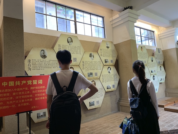 隨后,黨員們共同參觀了愚園路歷史名人墻,重溫入黨誓詞,緬懷革命先烈。這里記載了老一輩革命黨人的風華年代,現(xiàn)場通過一張張老照片及多媒體視聽展講述先輩們光榮事跡,黨員同志駐足瞻仰,深刻領(lǐng)悟了共產(chǎn)黨人艱苦奮斗、百折不撓的革命精神,心中滿懷著對革命先烈們的崇高敬意。