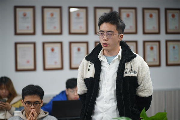 隨后是團(tuán)員先進(jìn)性評(píng)價(jià)和團(tuán)員教育評(píng)議環(huán)節(jié)。在每位同學(xué)發(fā)言完畢之后,所有團(tuán)員根據(jù)參考細(xì)則對(duì)發(fā)言人進(jìn)行百分制賦分評(píng)價(jià),評(píng)分采取個(gè)人自評(píng)和團(tuán)員互評(píng)相結(jié)合的方式。