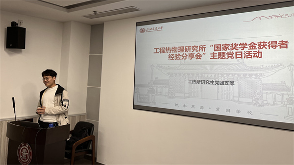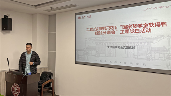 11月29日,工程熱物理所研究生第一黨支部在機械與動力工程學院F210會議室舉行了“工熱所國家獎學金獲得者經驗分享會”主題黨日活動。本次活動由工熱所研究生第一黨支部主辦,工熱所研究生第三黨支部協(xié)辦。活動由工熱所研究生第一黨支部書記金圣皓主持。活動邀請到了近兩年內工熱所博士生國獎得主馬致遠和林濤,以及工熱所碩士生國獎得主劉佳政和田希坤進行經驗分享。